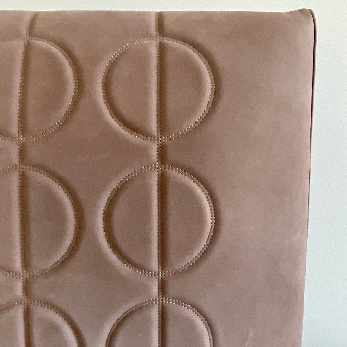 The Curtis bed owes its original identity to the precious quilting. The exclusive pattern, a circle crossed by a vertical line, has been designed by Minotti Studio to characterize the walls of the settings of the 2018 collection.