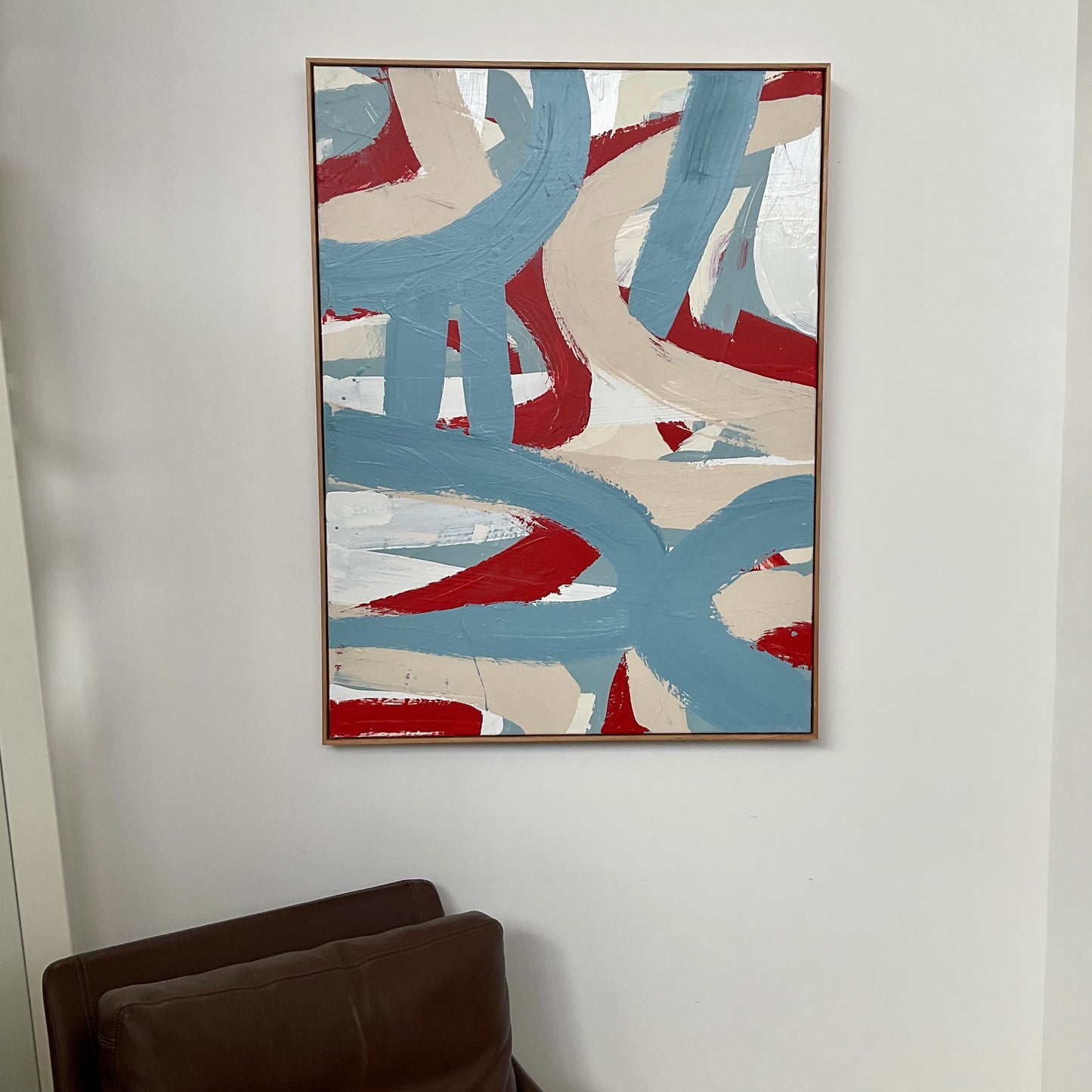 Phoebe Rolleston is a Melbourne born artist that changed the moody, sombre tones of her hometown for the fresh and poppy hues of Byron Bay, but her design friendly pieces still make any room glow. Phoebe Rolleston’s work is a collision of considered colour and brash, brush strokes that occur on scale and with apparent haphazardness, but her approach is more of an interaction with colour and the results speak to the connection she has with the canvas and her technique.
