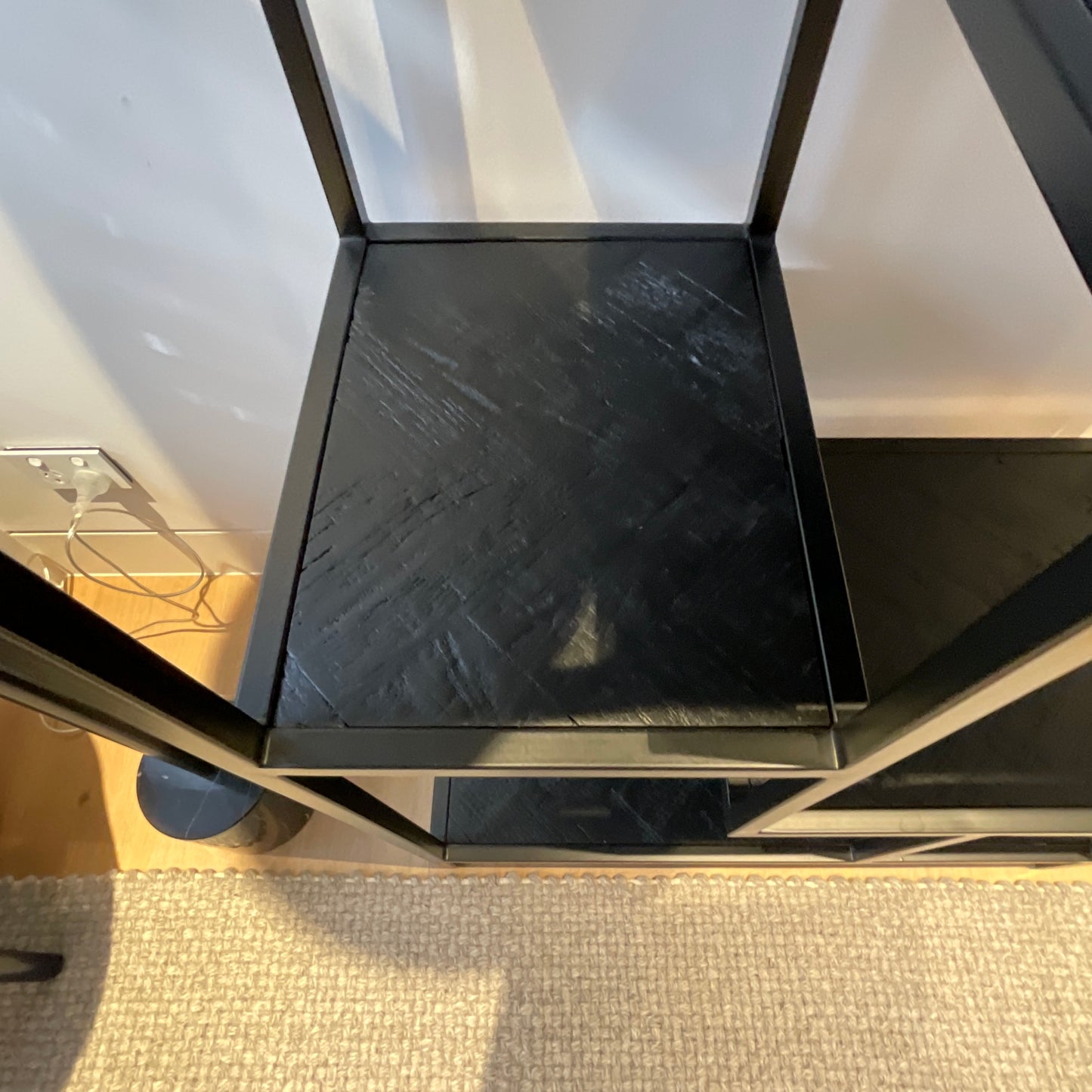 The Odessa Shelving Unit with handcrafted parquetry pattern inlay on each shelf exudes a natural style ideal for today's living spaces. The timber has a natural distressed look combined with a geometric metal frame. Place in your living space to create a striking display of coveted items.