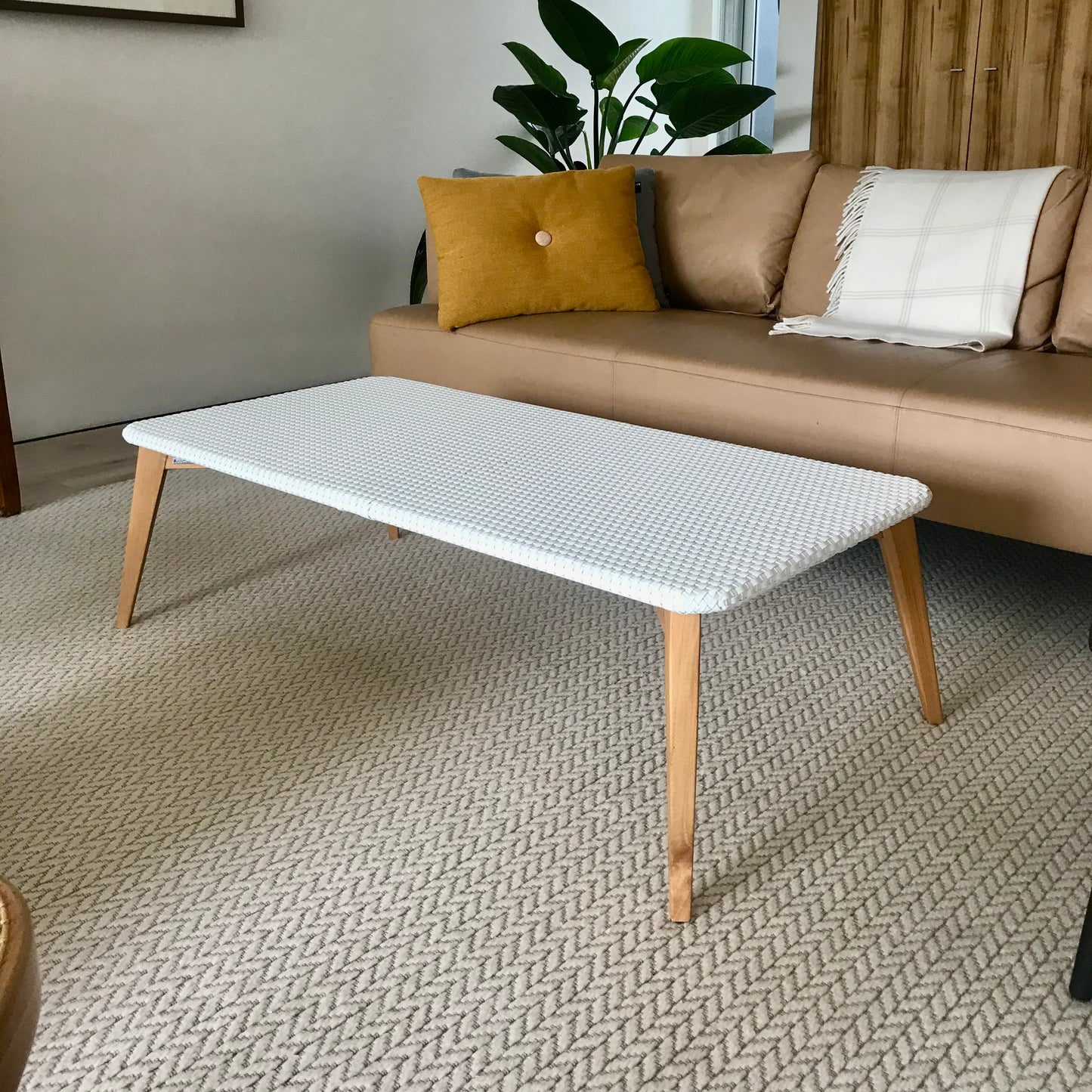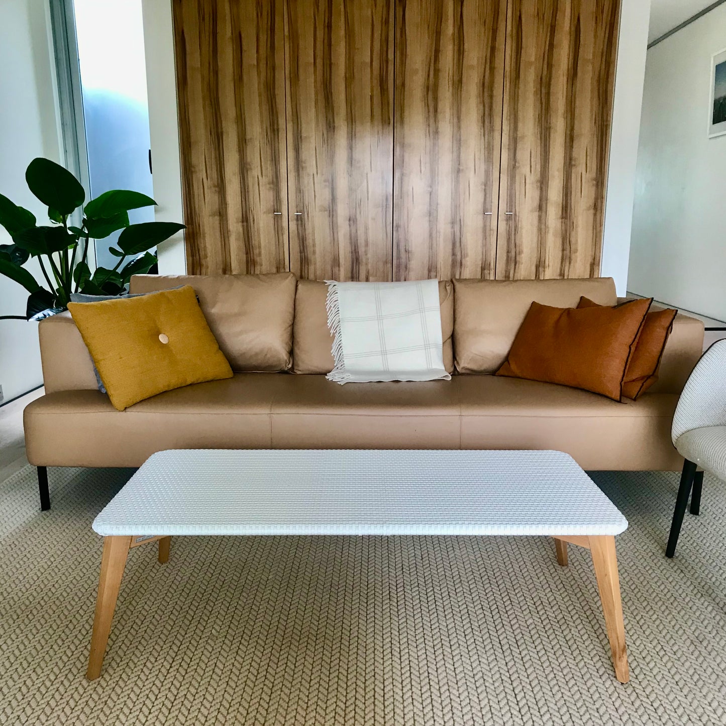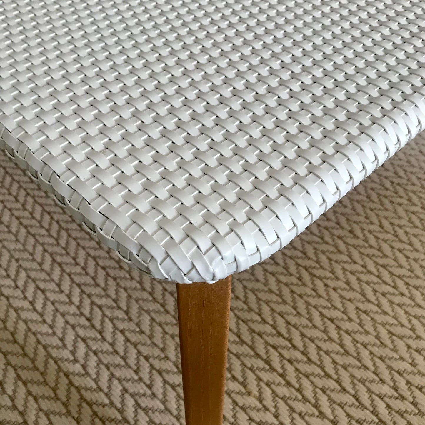 Made from a non-yellowing, hard-wearing lacquered aluminium with high quality weather resistant synthetic woven rattan, while the legs are in smooth natural teak. The Arc Coffee table is a classic outdoor piece with a unique twist.