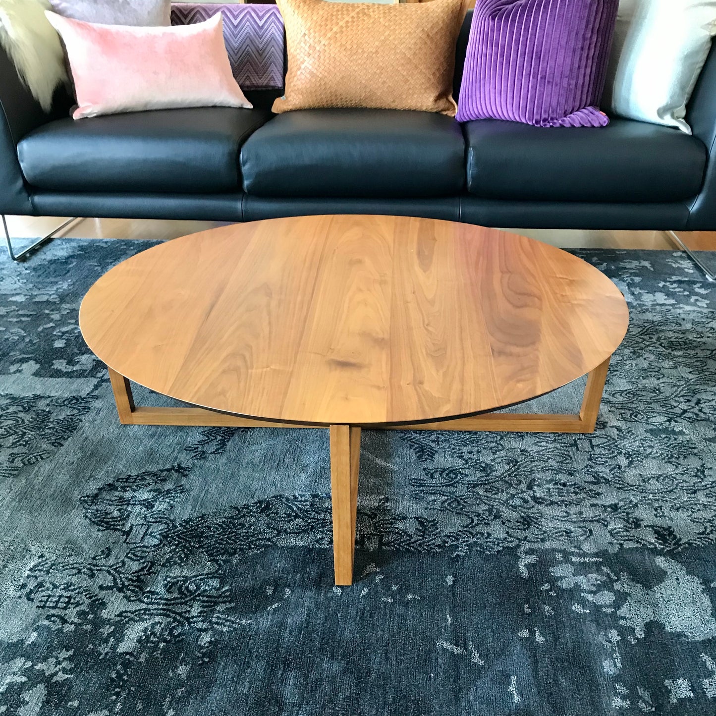 Clever use of chamfered edges to create an almost delicate, floating visual and the irresistible patina of solid wood are signatures of the Fineline collection. The coffee table features a circular or rectangular top supported by slender, angled legs and is the perfect addition to any lounge setting, providing beauty, function and flexibility. The Fineline coffee table can be fully customized in height and width, the added luxury of a marble top option completes this collection. The table we have on offer is in American Walnut.