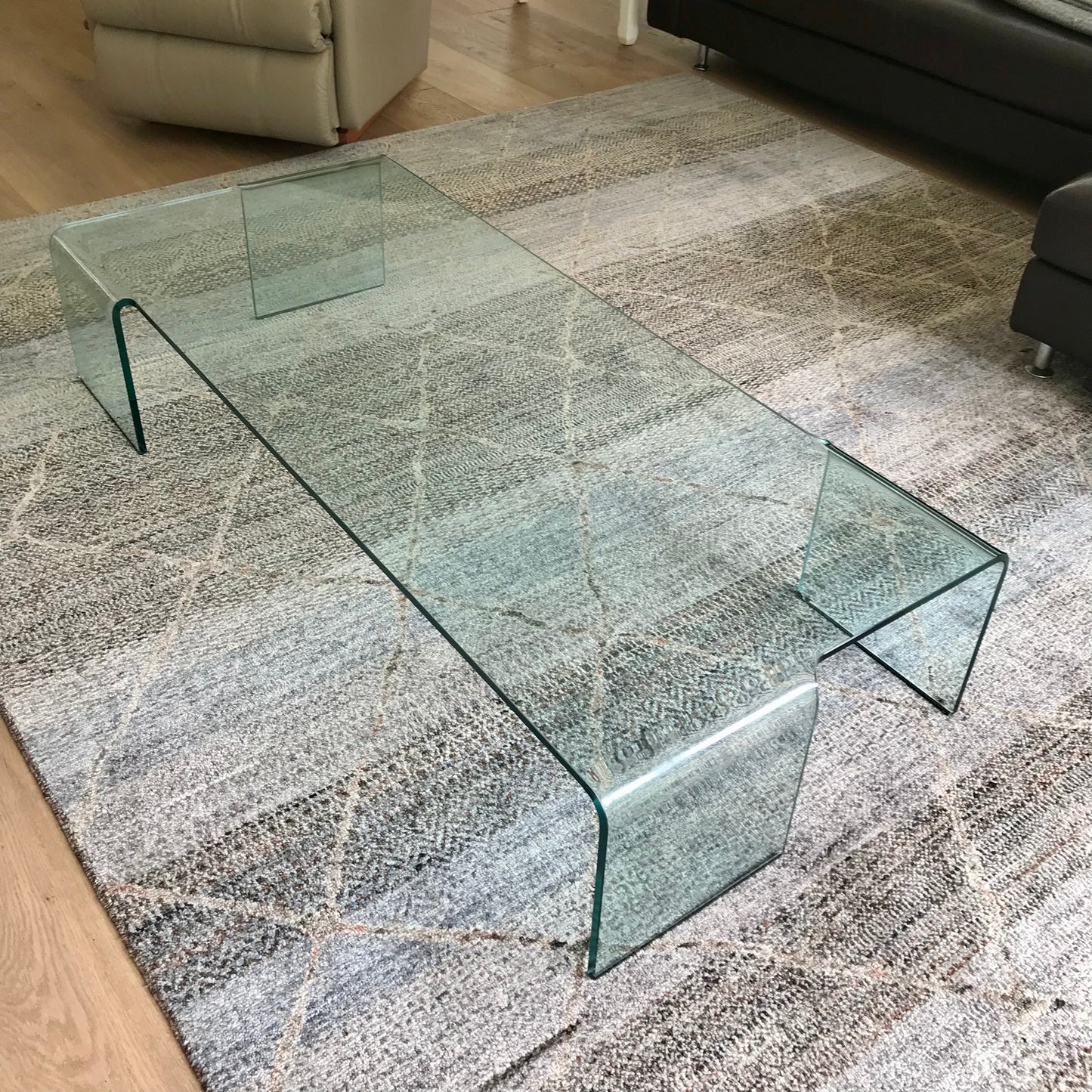 The Neutra Coffee Table by Rodolfo Dordoni for Fiam is a Monolithic coffee table in 12 mm-thick curved glass. The table we have on offer is in clear tempered glass.