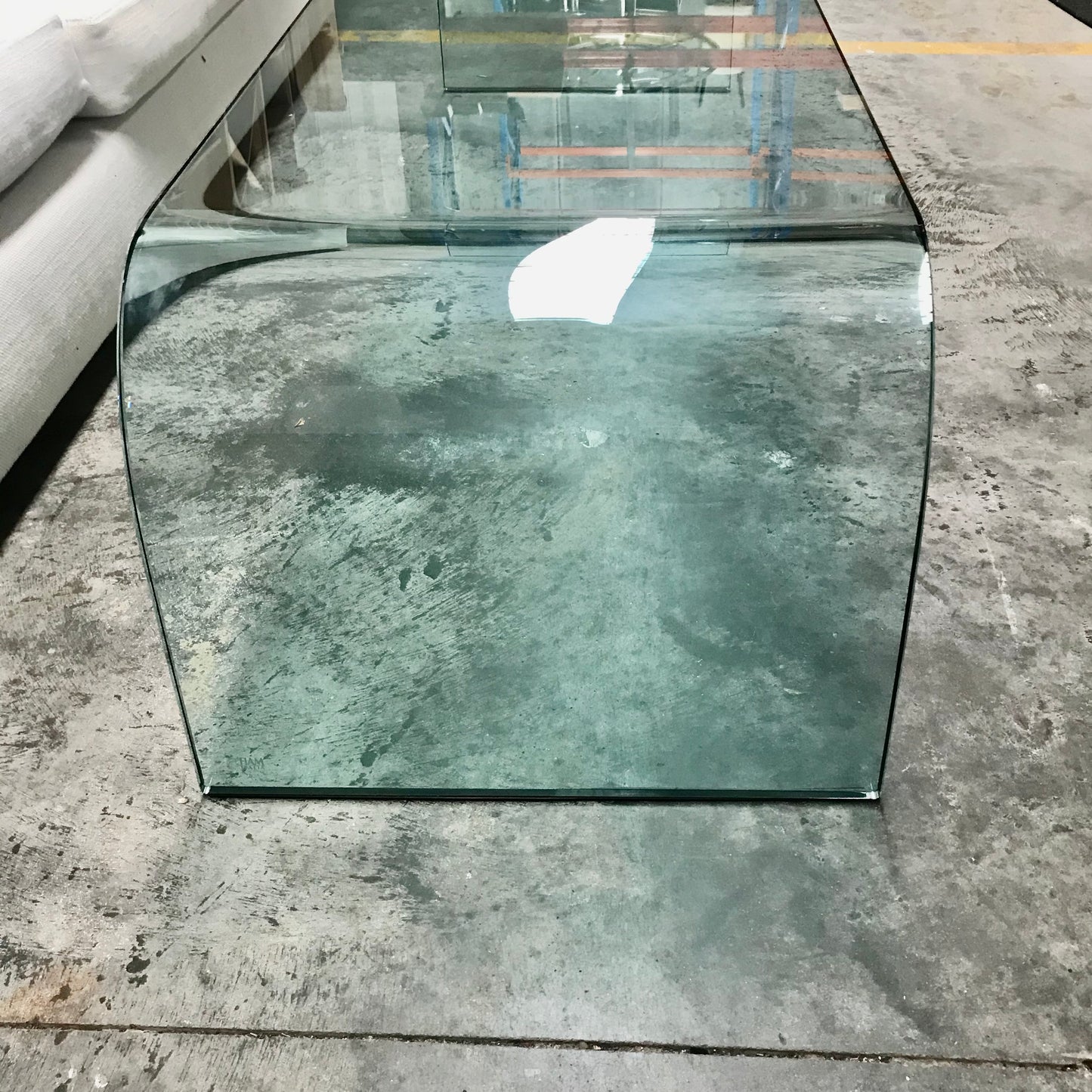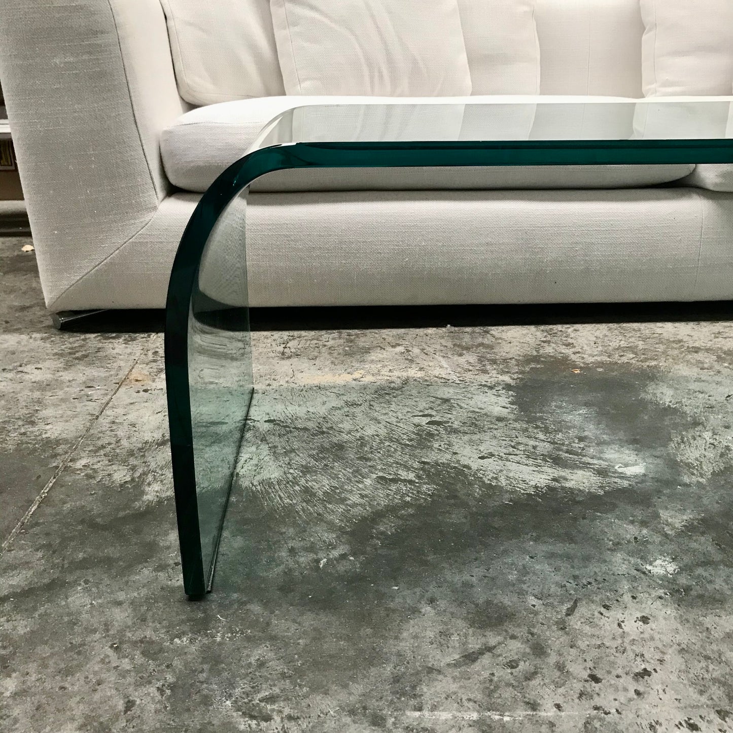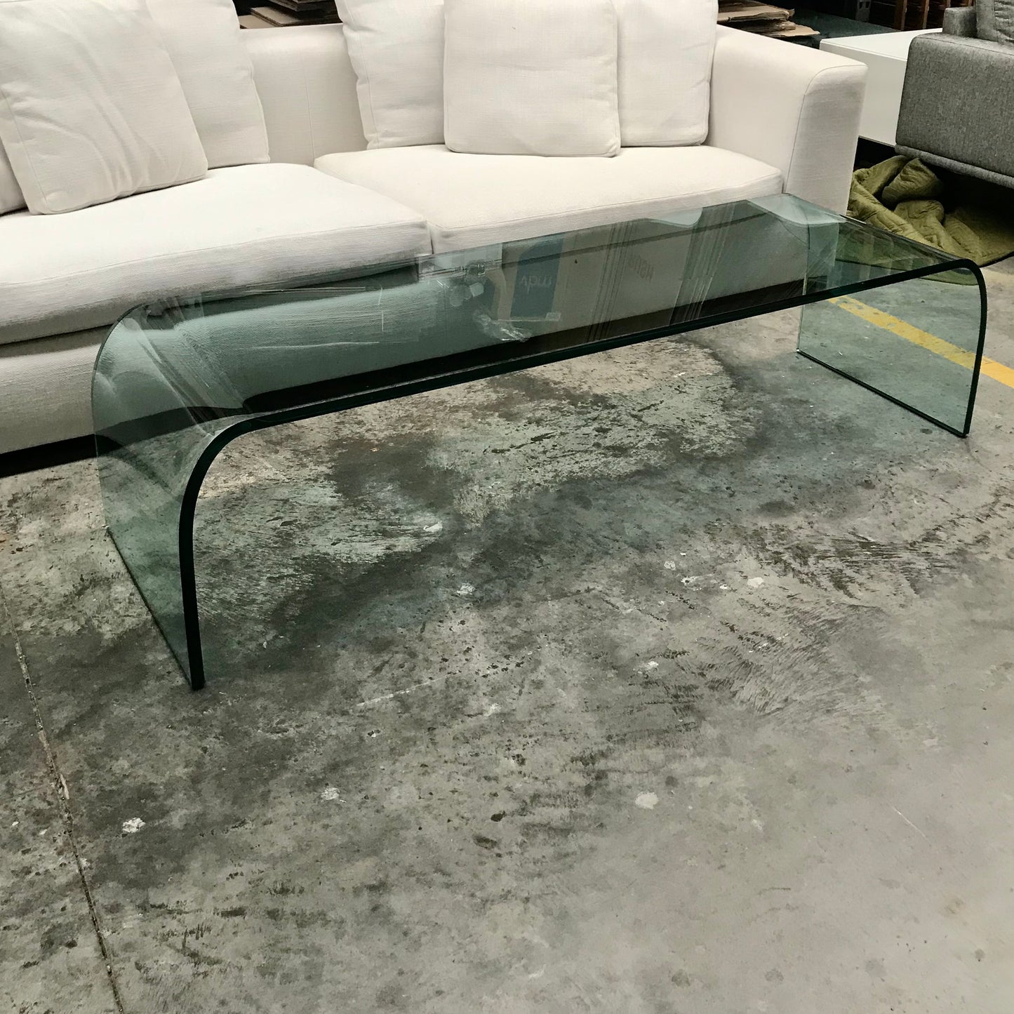 The Ponte Curved Glass coffee table by Angelo Cortesi for Fiam Italia is a design classic. Ponte is an elegant and classic monolithic coffee table in 10, 12 or 20 mm-thick curved glass. The table is the archetype that represents the art of curved glass and is also a metaphor for Fiam Italia's history centred around experimentation: an example of how a simple natural curve becomes the image of a wave of the sea. The table we have on offer is in 20mm glass.