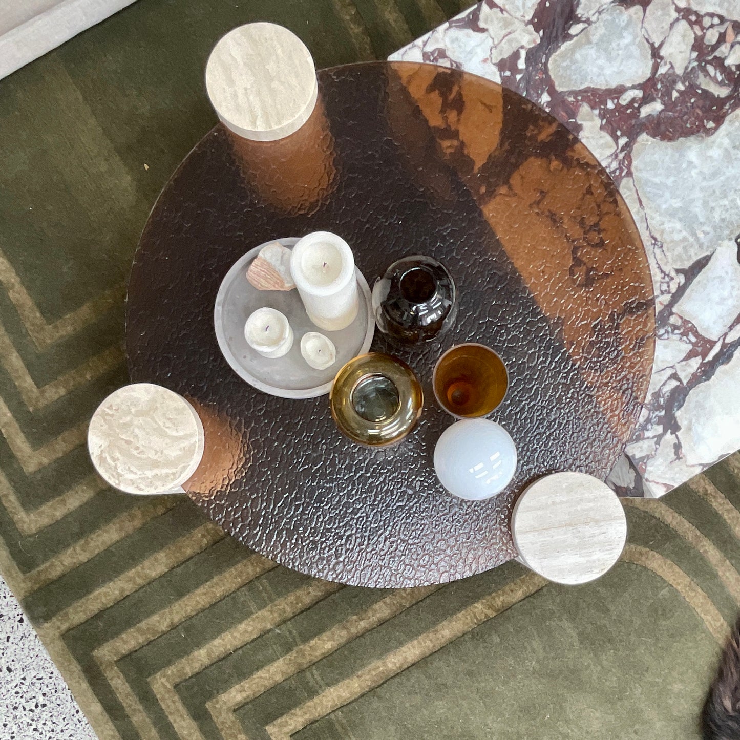 The Ripple Coffee Table features a smooth, clean design that will add a fresh sense of luxury into any room. The gorgeous ripple glass top reflects elegance and class while the travertine base creates a sturdy and practical structure whilst accentuating the overall polished style of the piece. The Ripple is a winner in anyone's eye and will for sure steal the attention in any living situation.