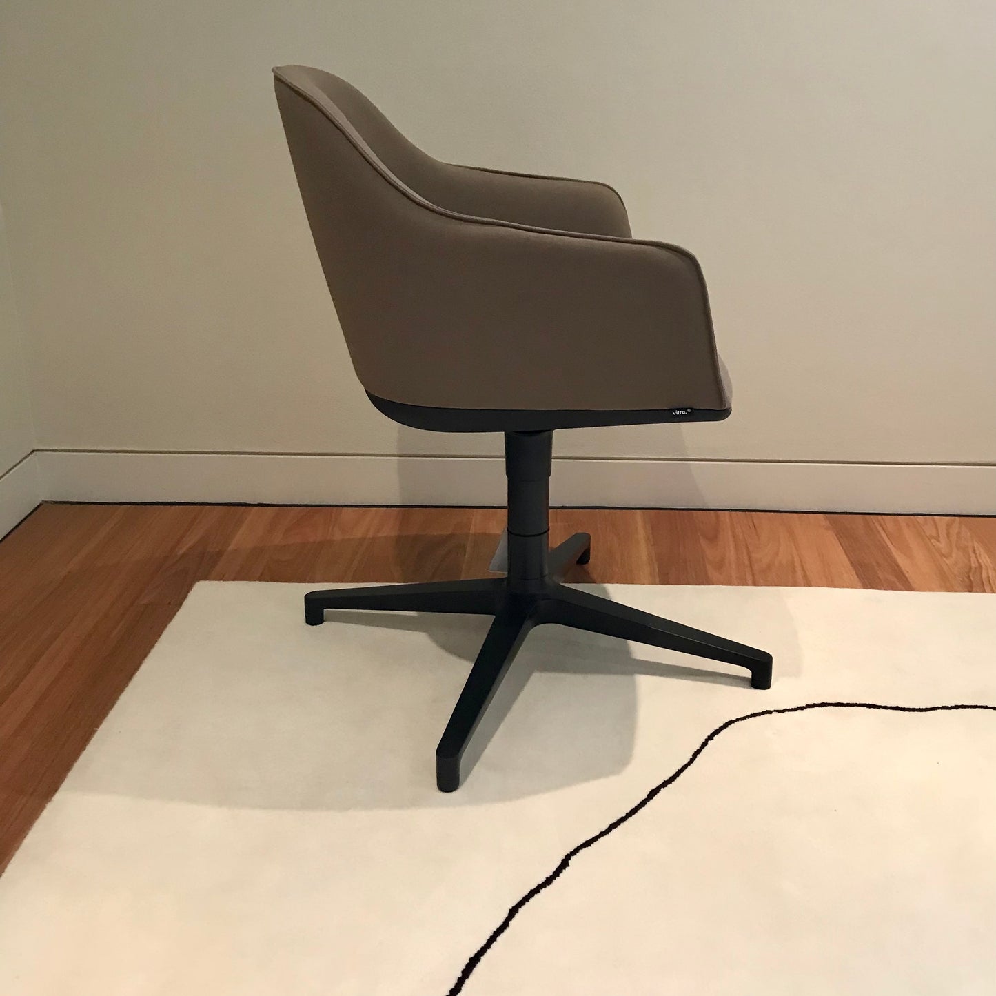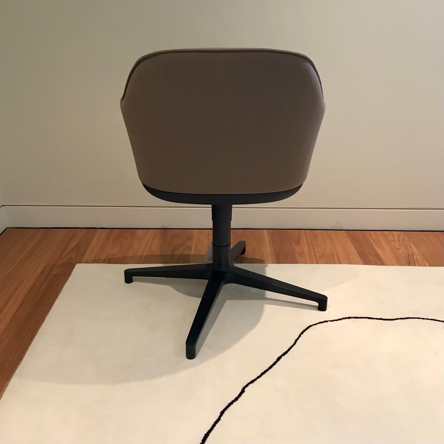 The Softshell Chair offers exceptional comfort, thanks to flexible ribs concealed in the back shell. Designed by Ronan and Erwan Bouroullec, the elegant, understated chair with the four-star base is available in a selection of colours, in leather or fabric. The chair we have on offer Four Star base upholstered PLANO Coffee (80)