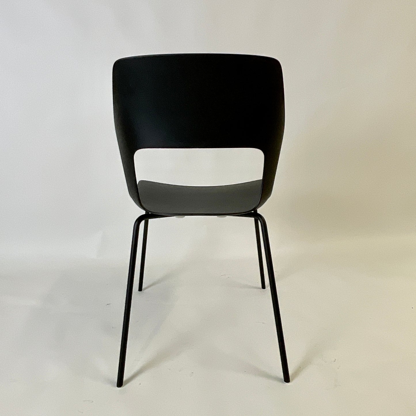 The chair we have on offer has Black metal legs, black polypropylene shell.