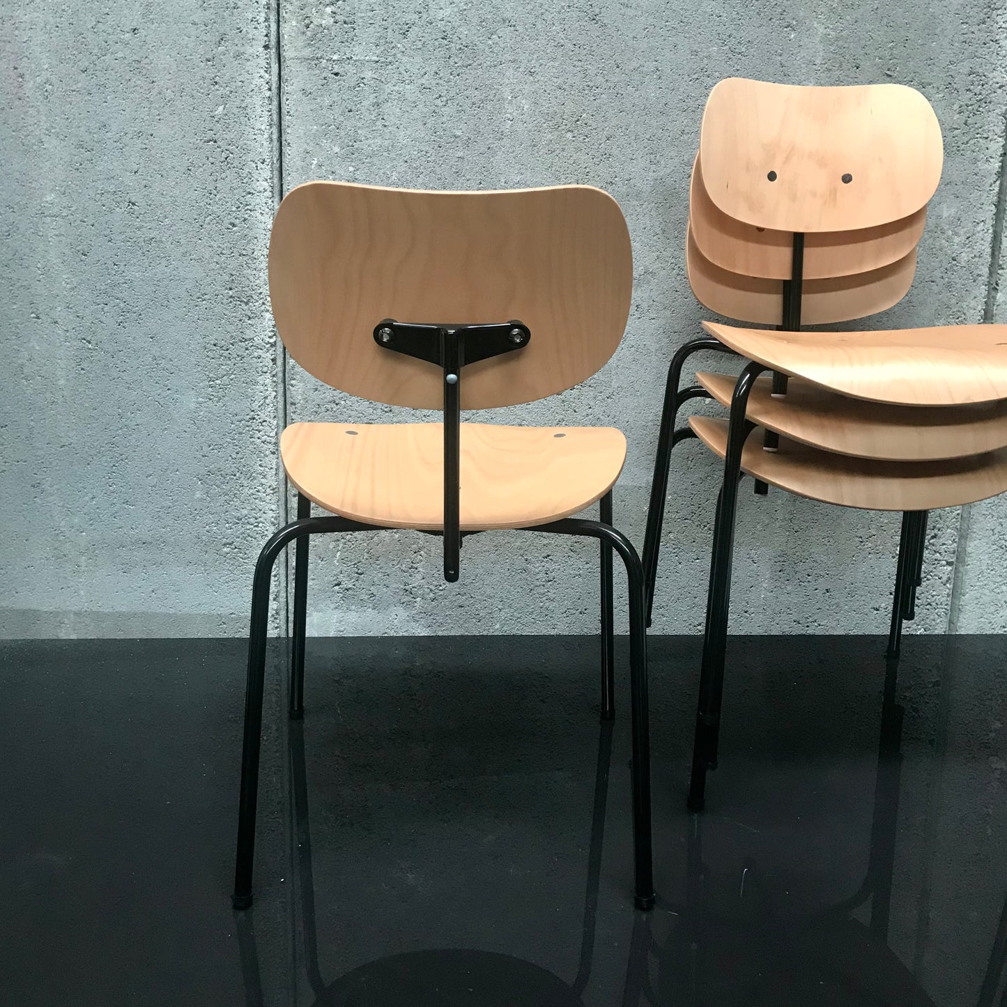 Set of FOUR SE 68 Multi-Purpose Chair by Wilde + Spieth with Black Base & Natural Seat