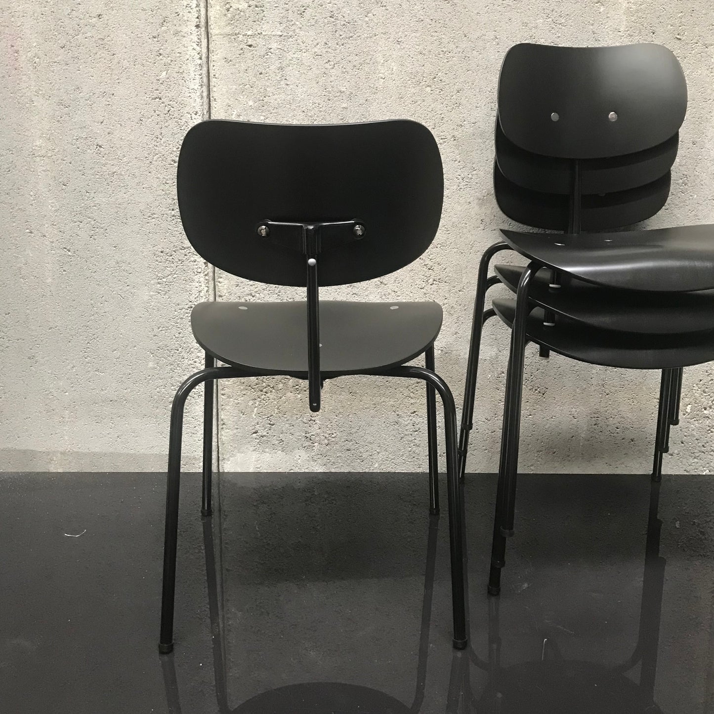 Set of FOUR SE 68 Multi-Purpose Chair by Wilde + Spieth with Black Base & Seat