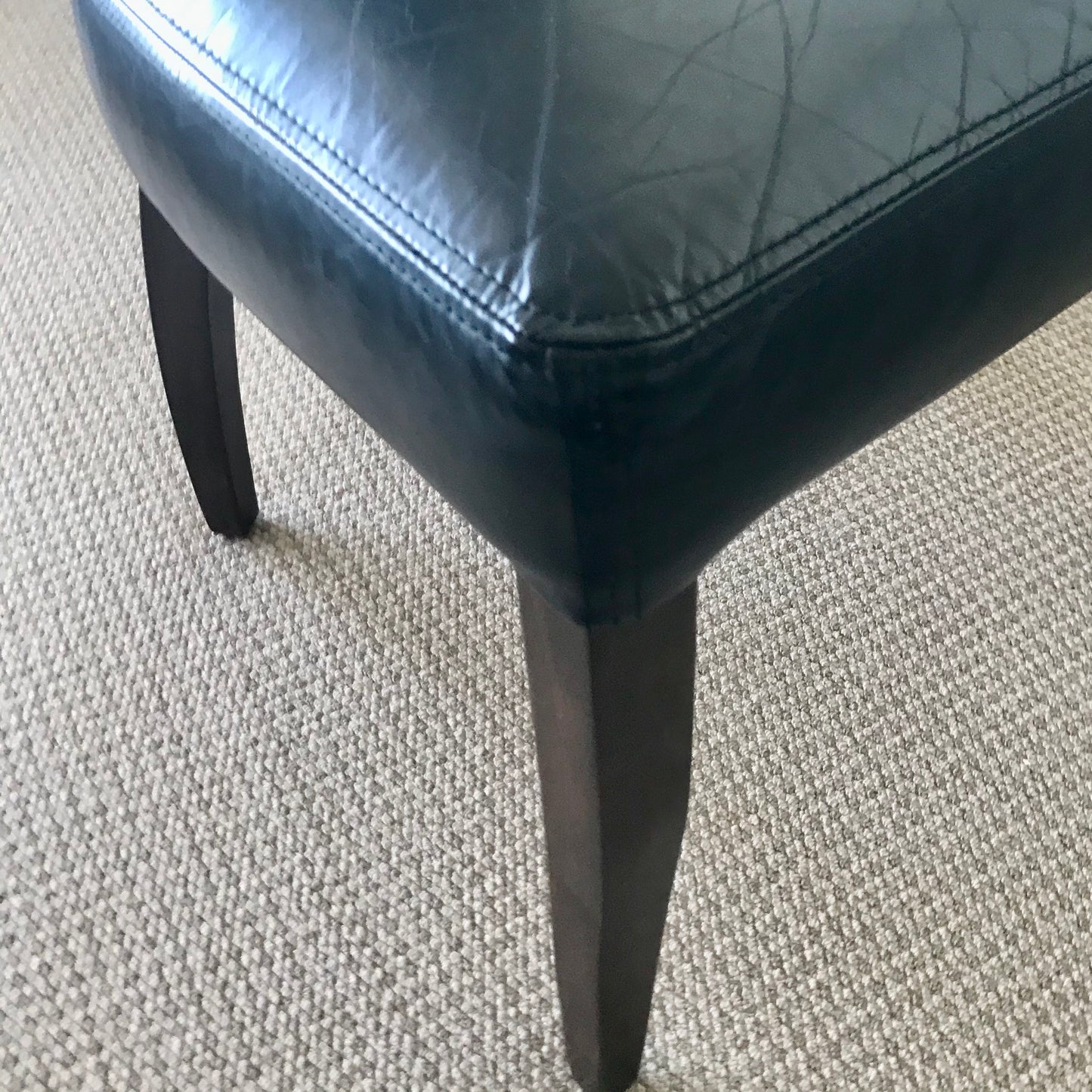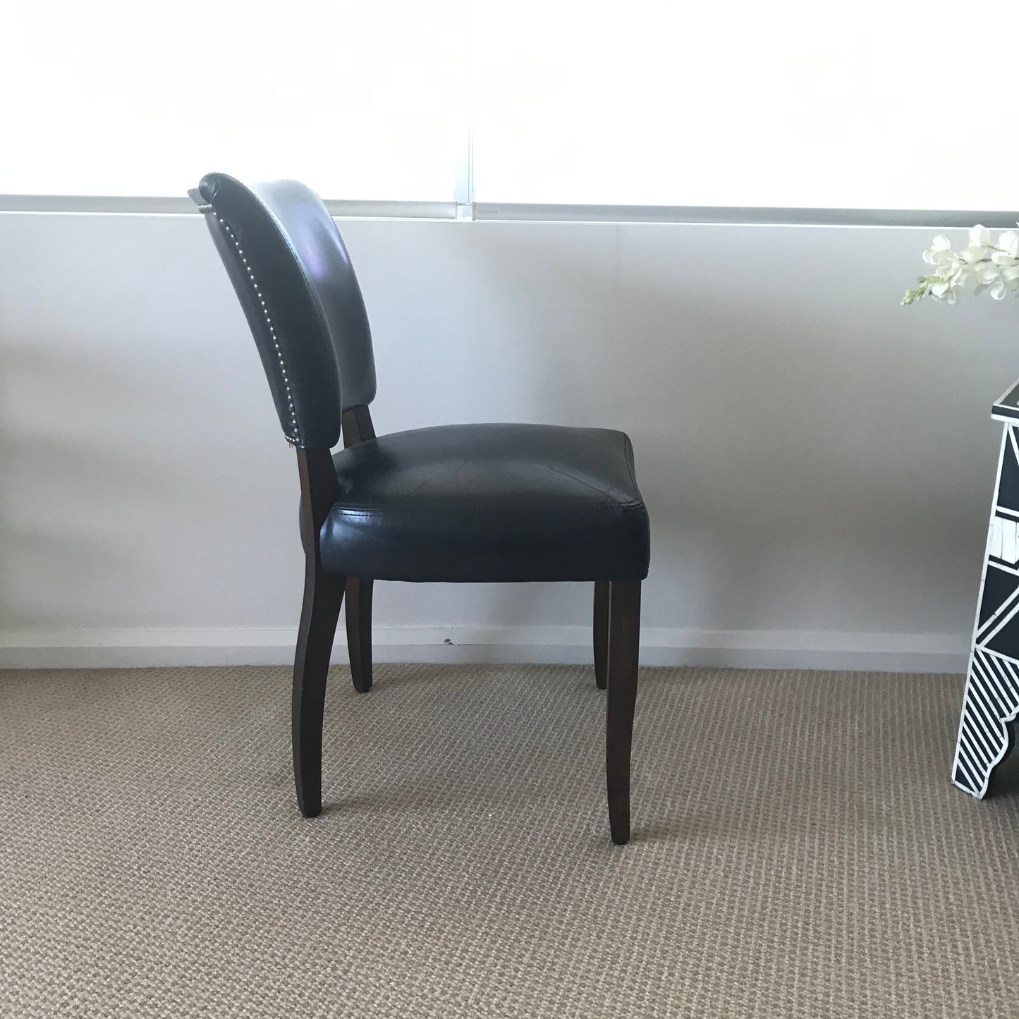 The Winslet dining chair has a solid timber frame with upholstered seat and back in leather with nailhead detail on the outside back.