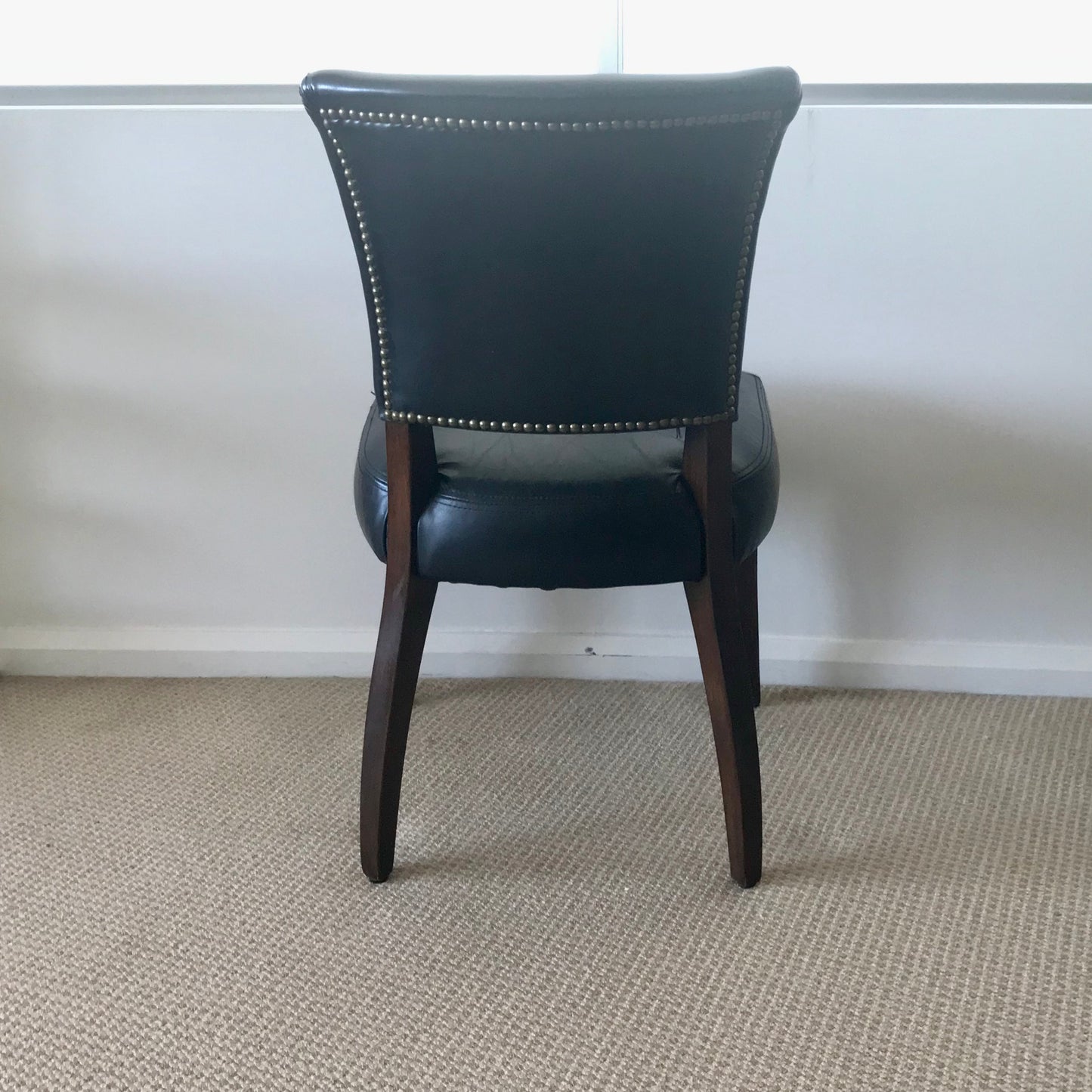 The Winslet dining chair has a solid timber frame with upholstered seat and back in leather with nailhead detail on the outside back.
