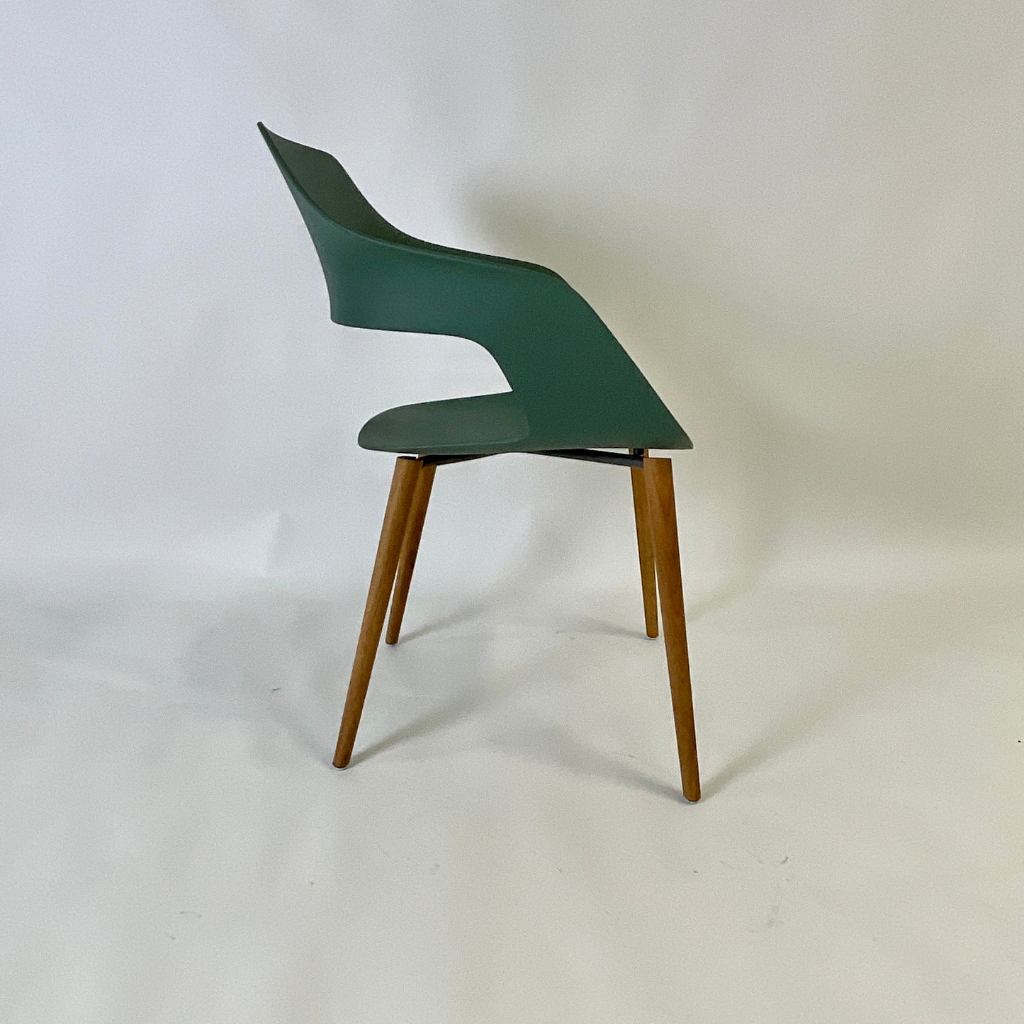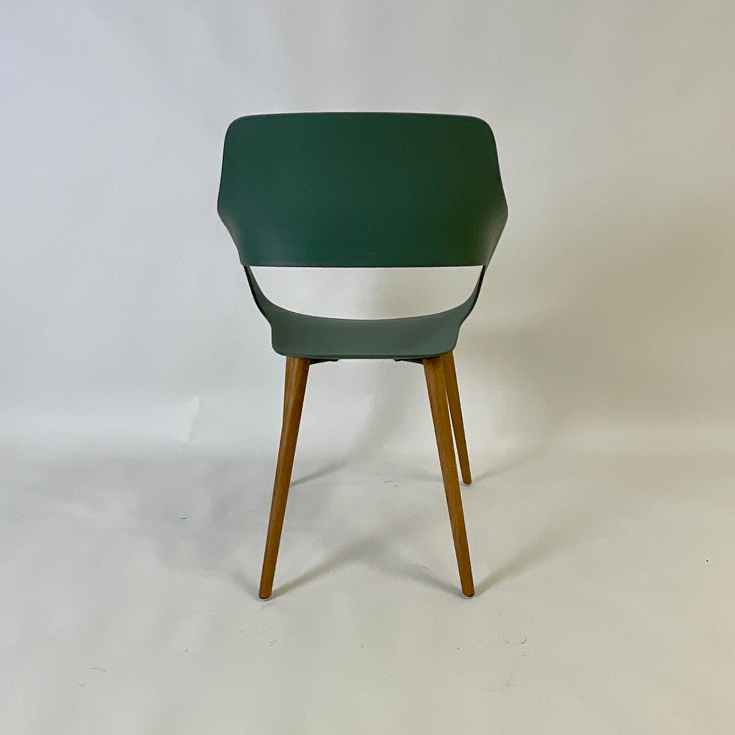 The chair we have on offer has Oak legs, Emerald Green polypropylene shell.