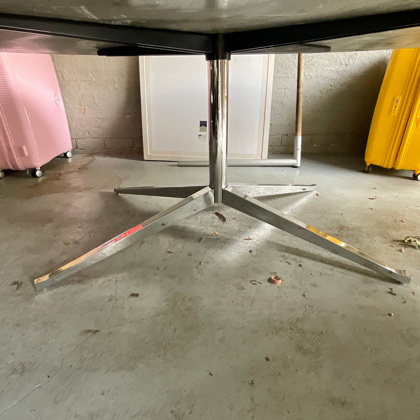 Florence Knoll described her designs as the fill-in pieces in design projects. "I needed the piece for a job and it wasn't there, so I designed it." While this may have been the motivation for the 1961 Table Desk, the elegant, perfectly proportioned result will be anything but a fill-in piece in your office or dining room. The table we have on offer is in Nero Marquina Marble. Frame and legs are heavy gauge welded steel with polished chrome finish. KnollStudio logo and Florence Knoll’s signature are stamped into the base of the table.