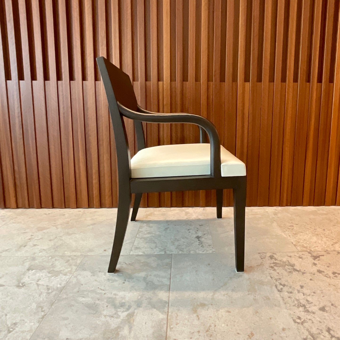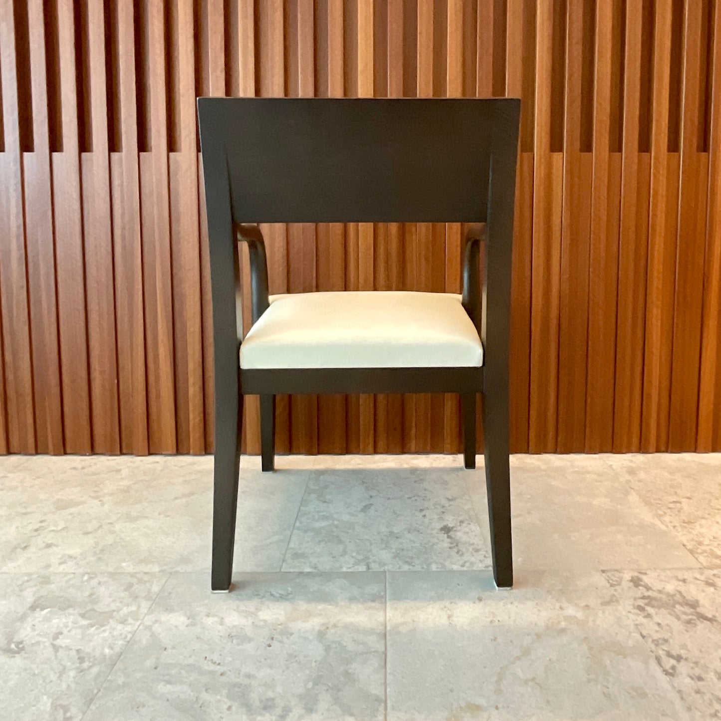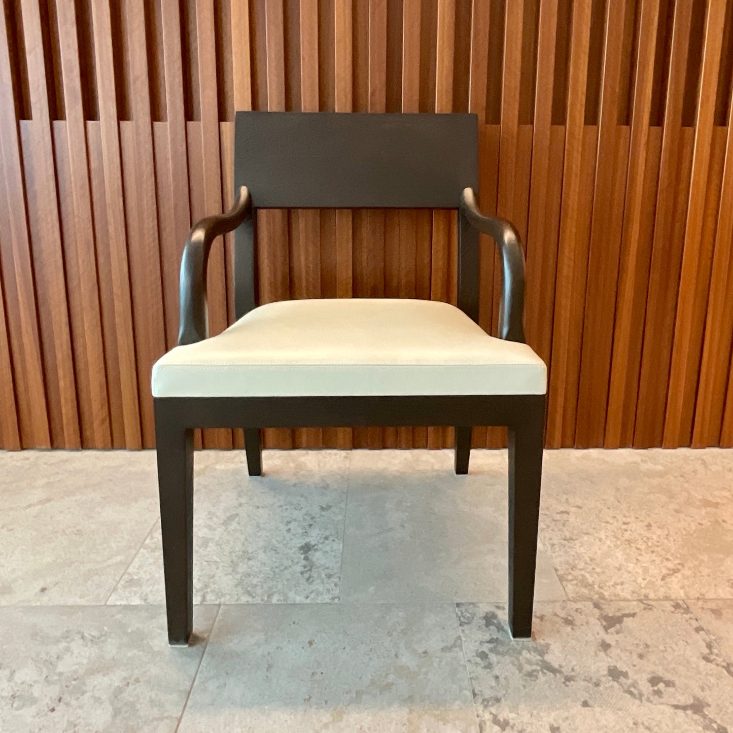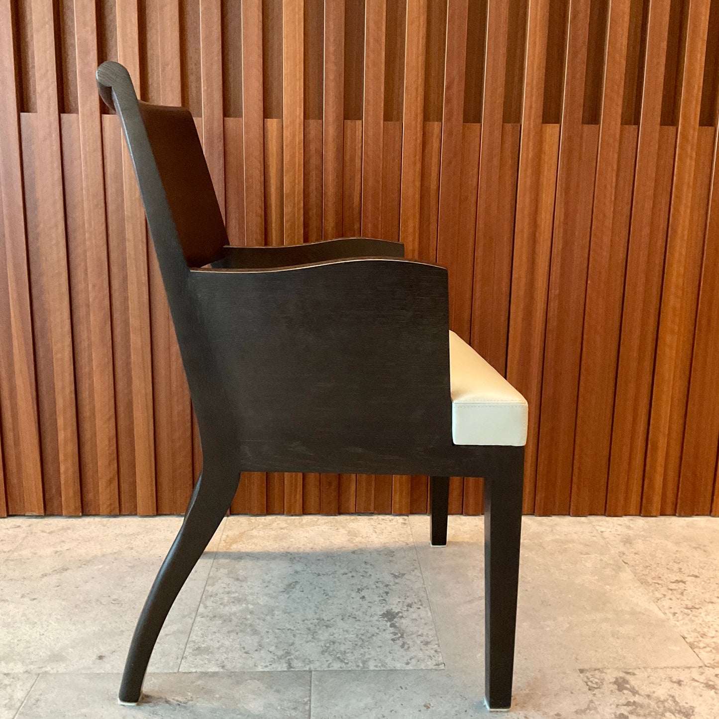 The chairs we have on offer have a solid wood frame and white Liaigre leather.