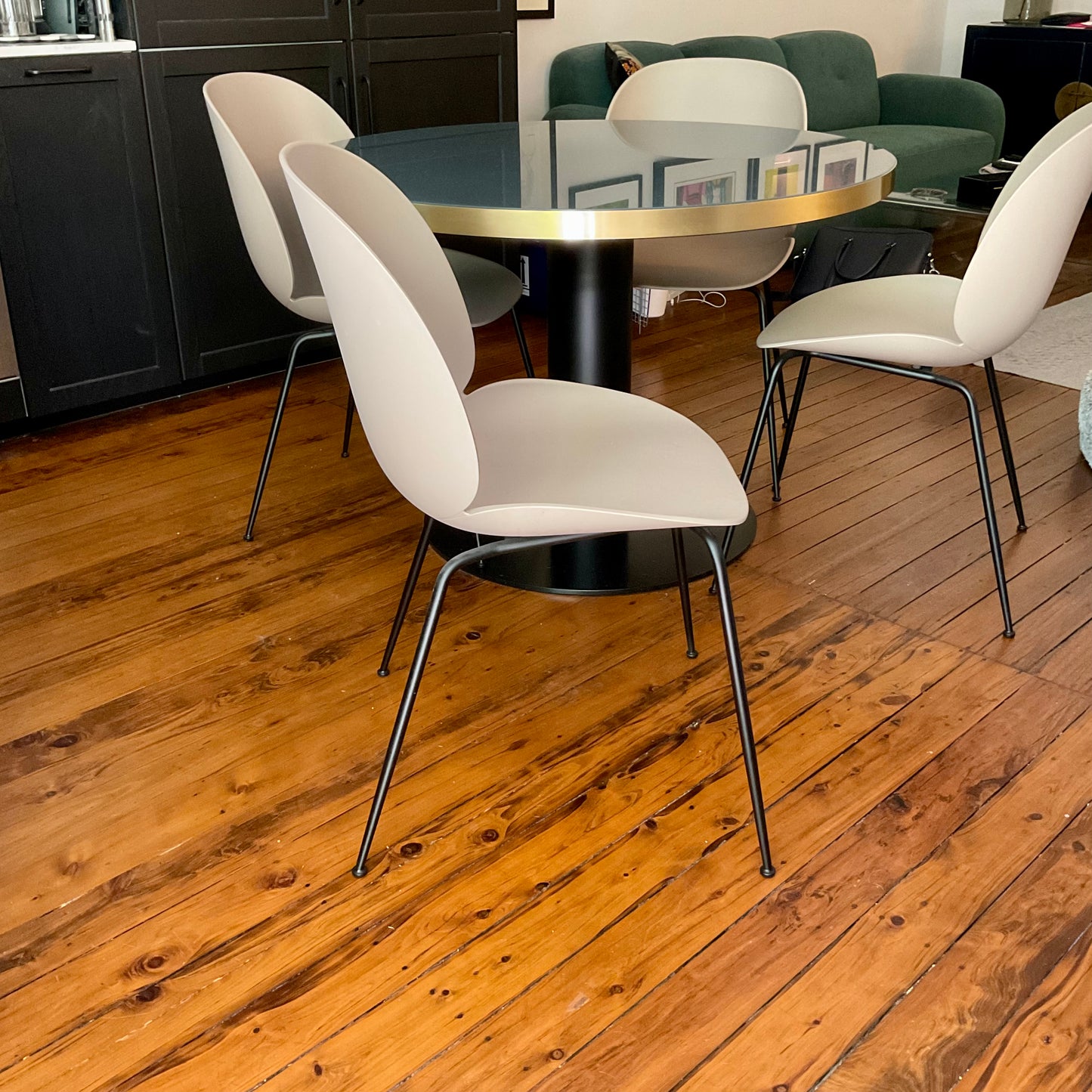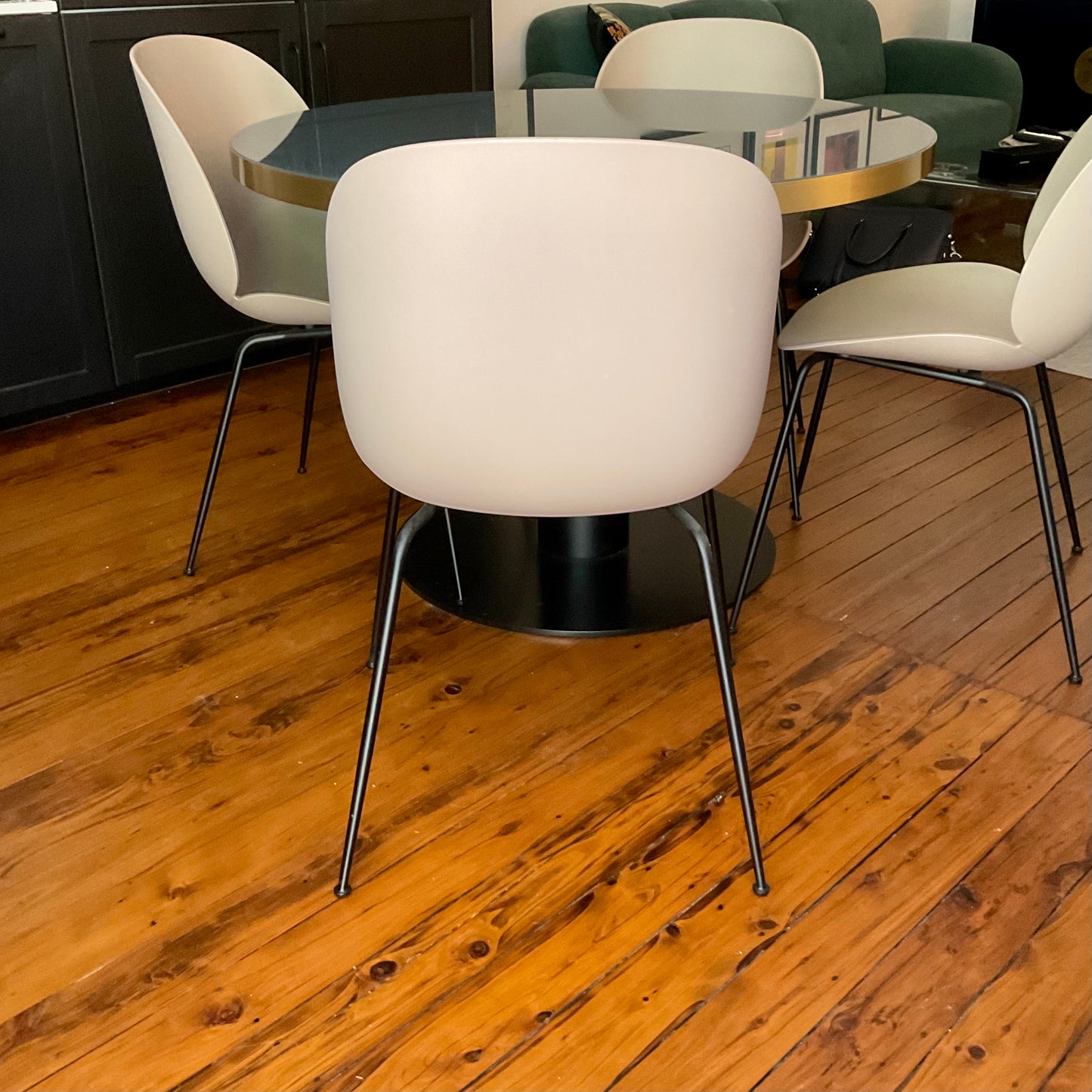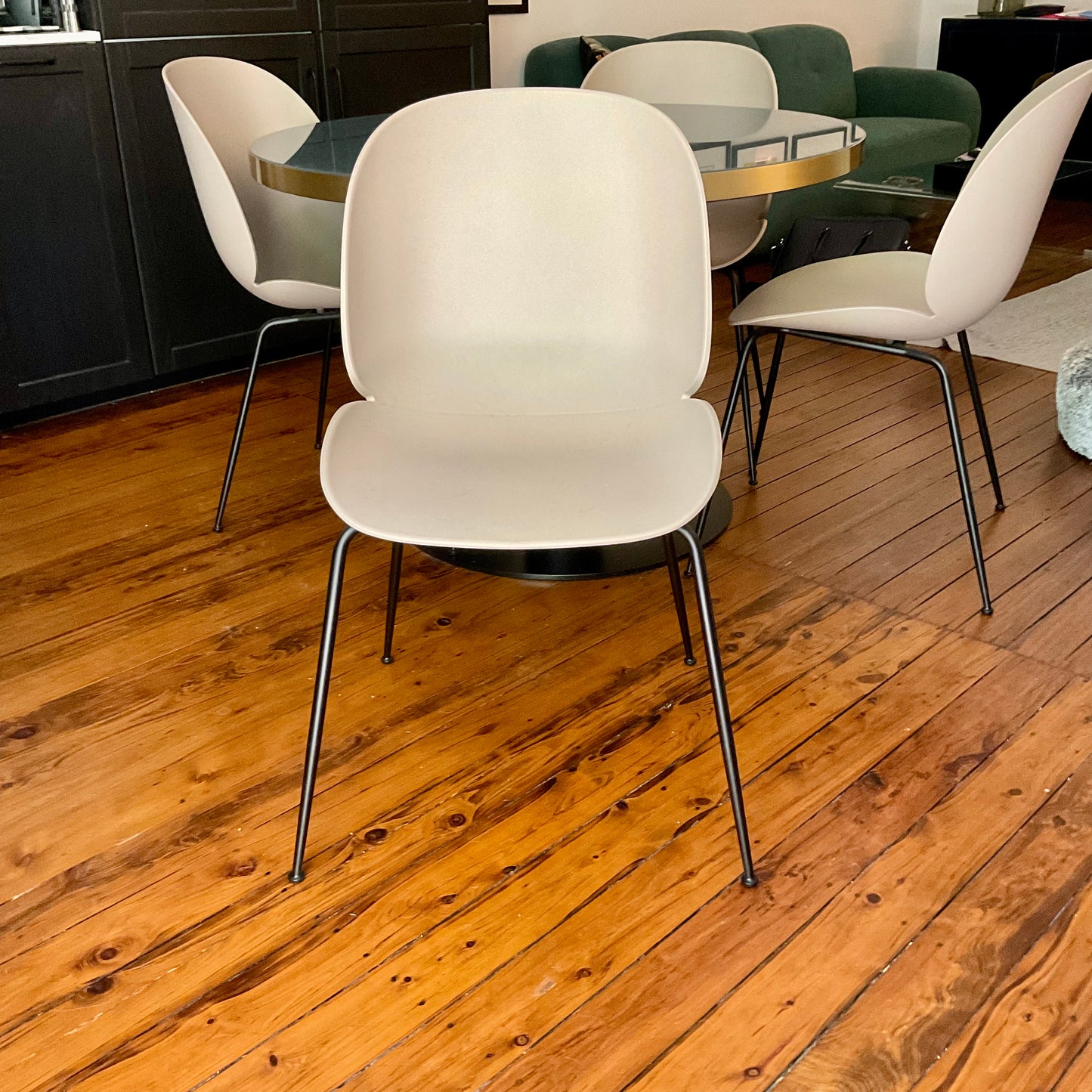 With the introduction of the un-upholstered Beetle Chair, the collection has bloomed into a chair series with unlimited possibilities. The Beetle Chair is no longer only an upholstered chair but also available with a polypropylene plastic shell, giving it a lighter expression with notable durability at a lower price point. The chair’s subtle matte texture offers a soft tactility where its outstanding sitting comfort is obtained. Thanks to the wide spectrum of colour and base options, the un-upholstered Beetle is an ideal solution for both formal and informal spaces alike. Mix and match between the seven harmonious colours to create a personal expression. The chairs we have on offer have a new beige shell with matte black legs.