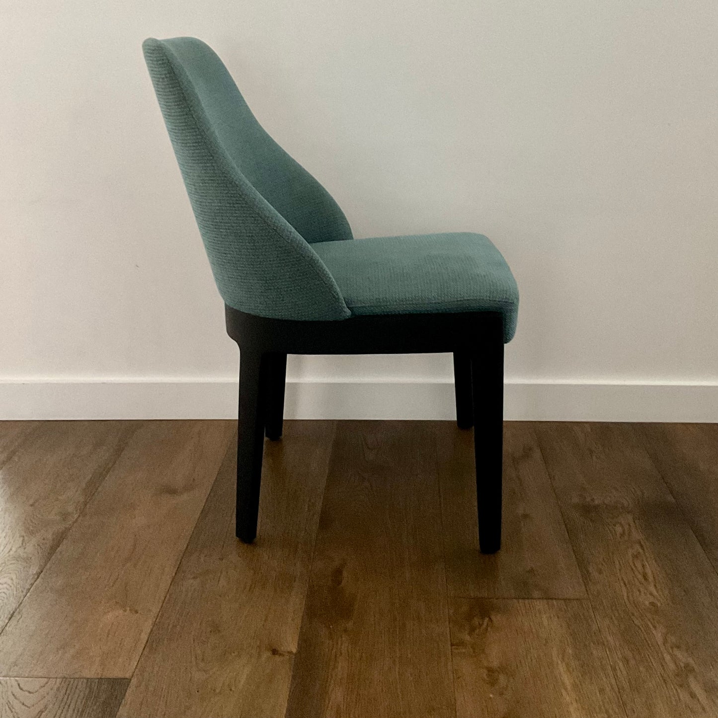 Each piece of the collection, designed by Rodolfo Dordoni, carries the essence of contemporary design and the memory of tradition. Their personality reaches toward the future, which brings with it the certainty of experience. The strong mark of the solid wood structure balances the fluid lines of the backrests to blend ergonomics and elegance to create comfortable chairs. The value of handcraftsmanship is expressed in the masterful use of high quality raw materials: wood, fabric and leather. Details were designed and applied with passion and care, which underscores the versatile nature and appeal of these pieces. The chairs we have on offer have legs in Black Oak with fabric Kristal 9880.