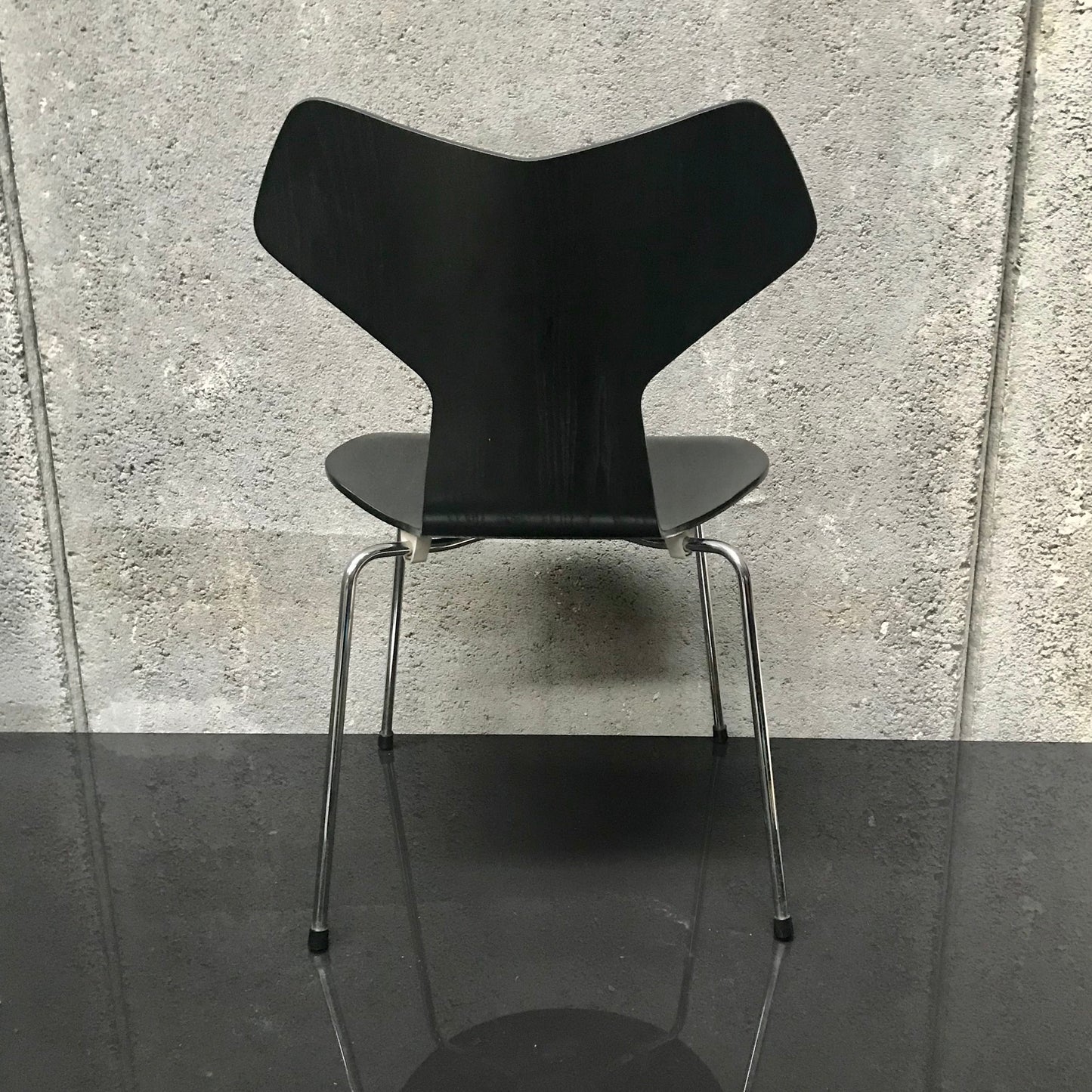The Grand Prix Chair is an Arne Jacobsen design from the fifties. When Model 3130 was introduced at the XI La Triennale di Milanoin 1957, the chair won the Grand Prix award – and was subsequently renamed! Grand Prix was originally made with wooden or metal legs. It’s been away for several years, but due to popular demand, it’s now back in the stores from mid November. Grand Prix has a supreme sitting comfort, and the very distinguished design with the uniquely shaped back makes it look particularly well in groups or in rows… Available in lazured black finish and with metal legs exclusively. The chairs we have on offer are in