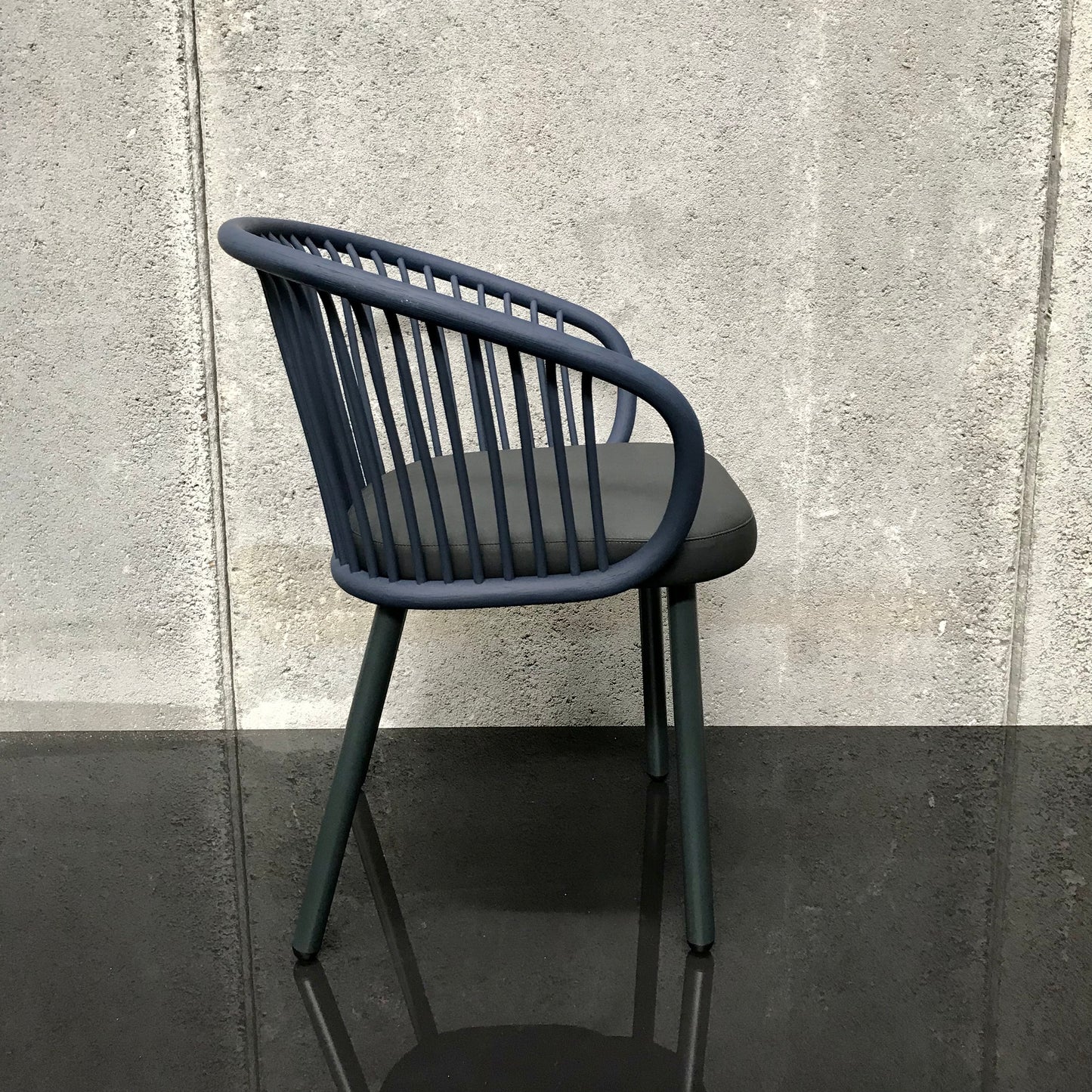 Simplicity, comfort and durability come together in this design by Mario Ruiz, three features that stand as a guarantee for happiness. If there is one word that defines the new collection of Mario Ruiz for Expormim it's detail. Small details in the design celebrate the tradition of craftsmanship which is the main distinguishing feature of Expormim. In the words of the designer: Nothing would be as it is in the elements that make up this collection without the material that supports it: solid wood. It is the point of origin, the skin that gives identity to the pieces, which explains each of the details and which, in contact with the rattan, generates a surprisingly fluid dialogue. The chairs we have on offer have a metal 4-leg base finished in: #101 Black, fine textured Rattan back finished in: R16 Navy blue, Seat pad to be upholstered in: Group 1 Valencia Faux Leather, colour: #9035 Black