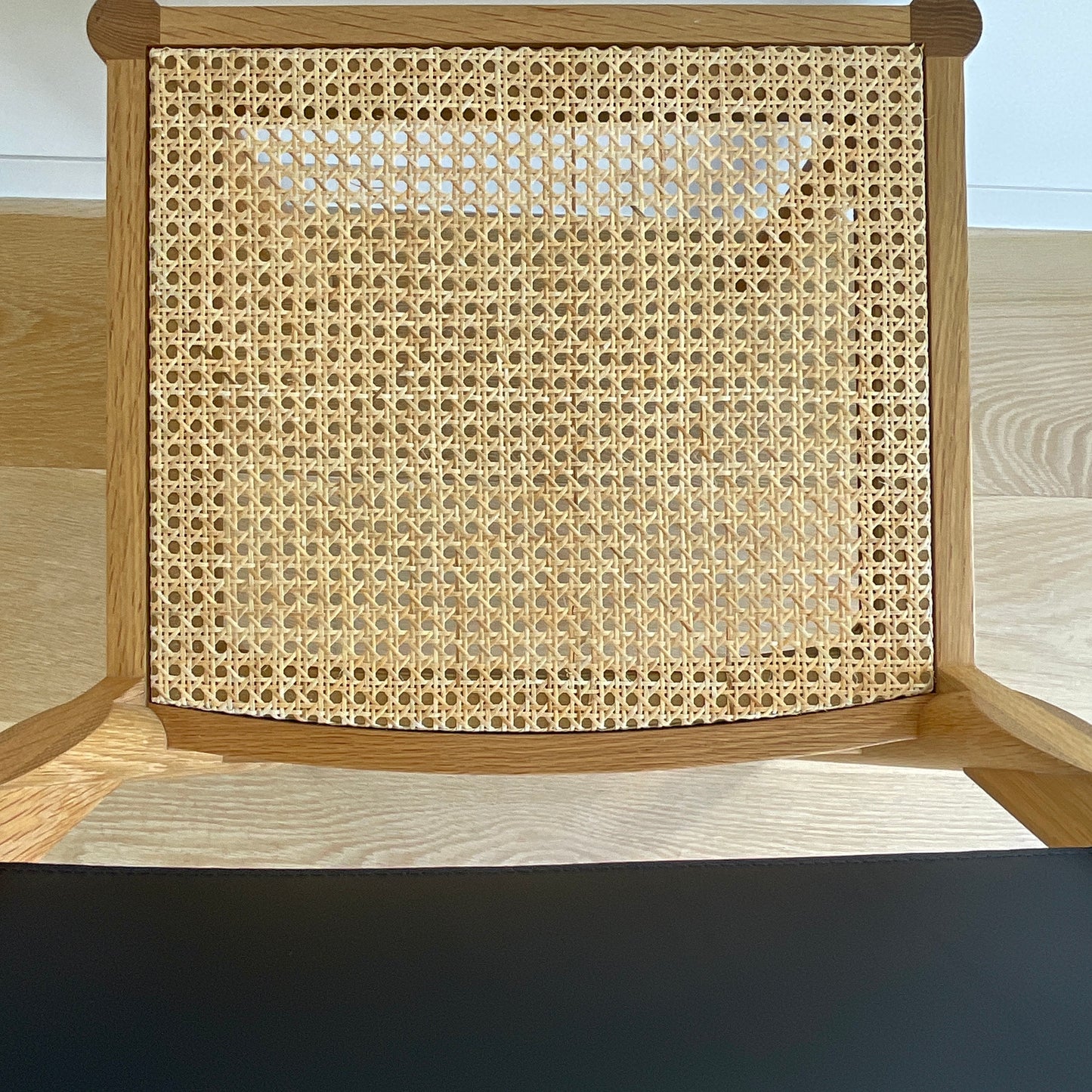 Solid American Oak frame with leather sling back and hex weave rattan seat. Jardan timber is sourced from sustainably managed forests and available with a selection of finishes. Designed by Jardan, our furniture takes shape at our Design + Manufacturing HQ in Melbourne, Australia.