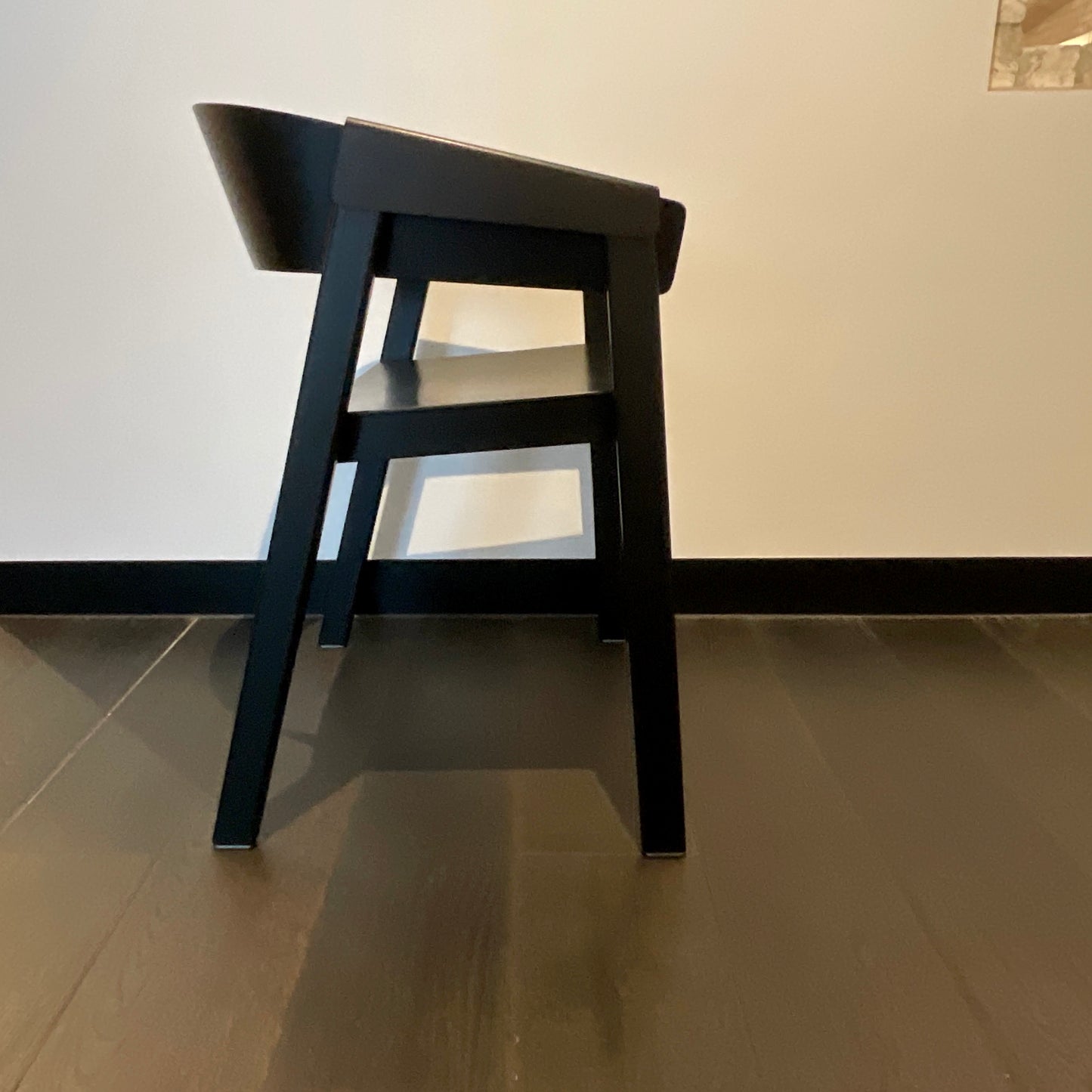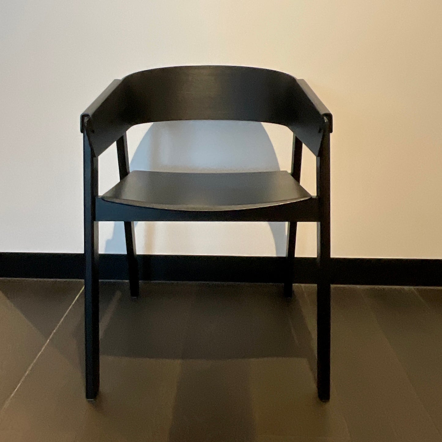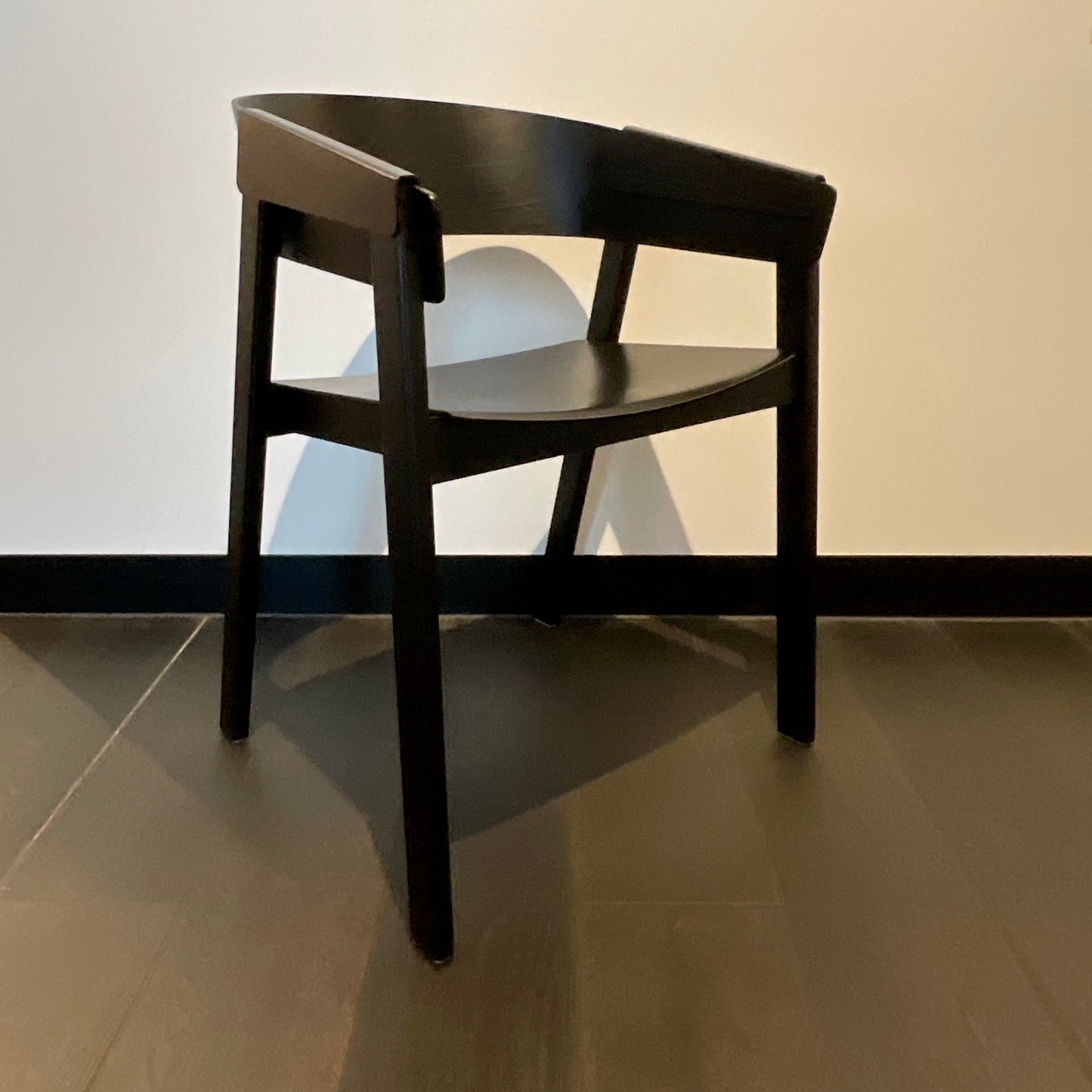Cover is born from a desire to create a comfortable and contemporary armchair in wood. I aimed for a crisp and vivid expression in the plywood while looking for a solid and grounded look in the frame and base of the chair. Three years of play and hard work in the making has resulted in a light, yet strong armchair, playing and taking the moulded veneer to its extreme. The chairs we have on offer are in black