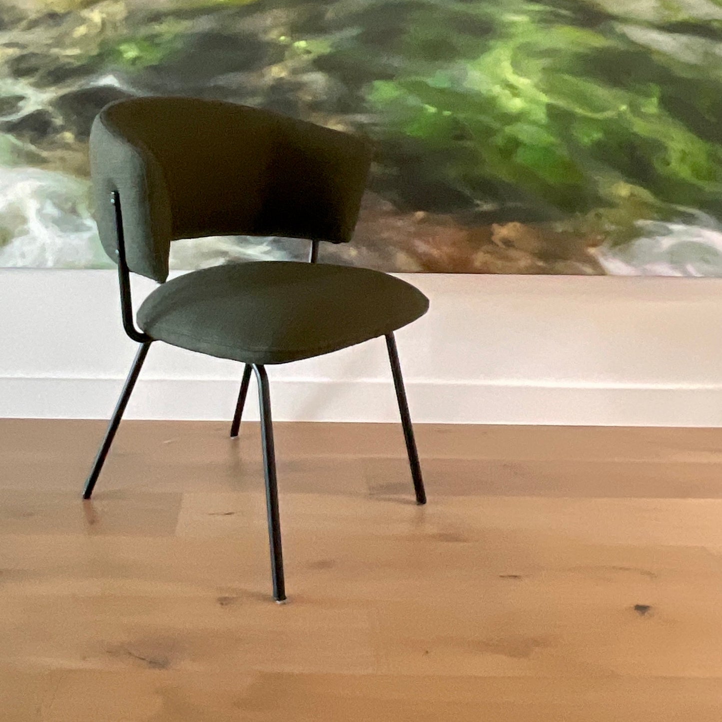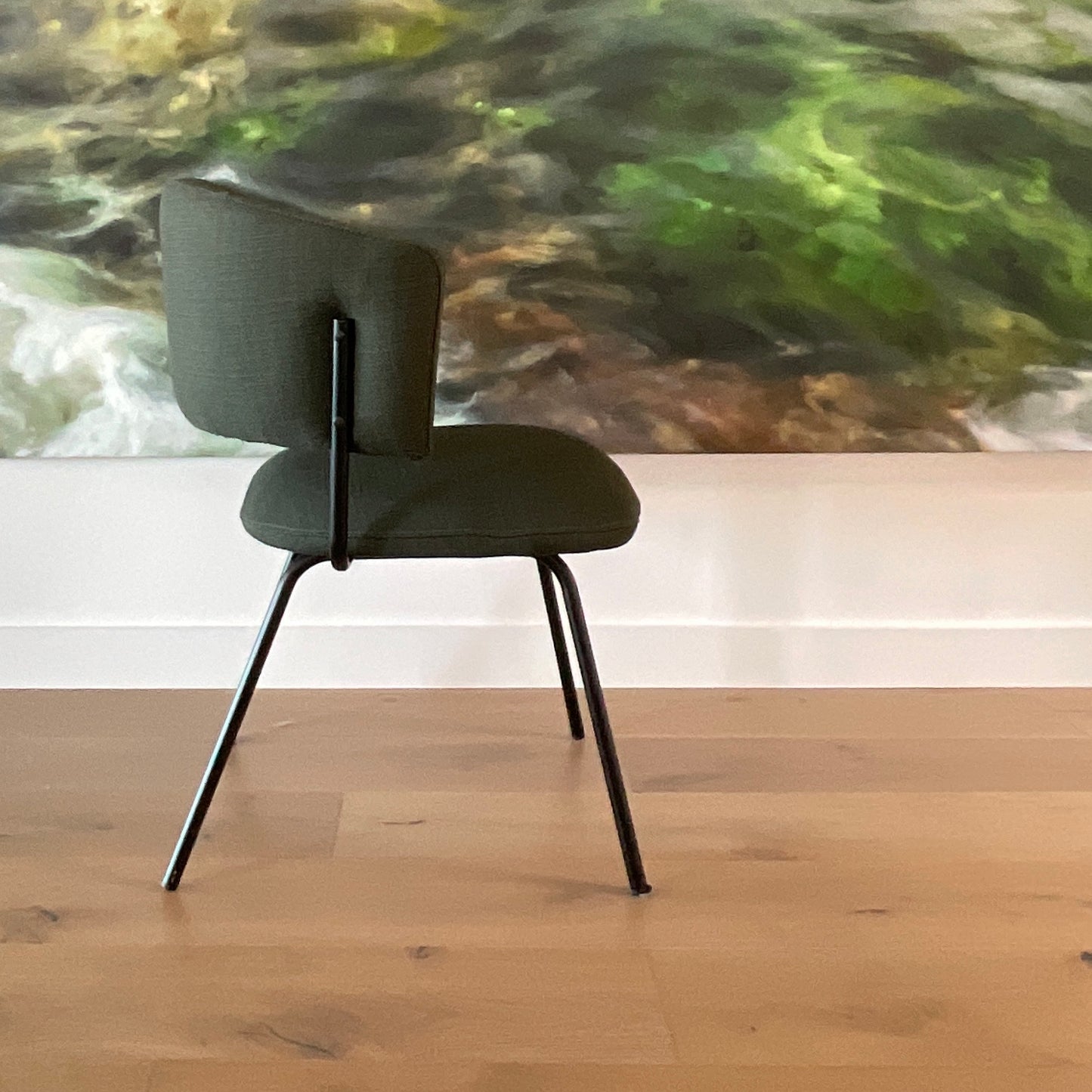 Boasting timeless sophistication made for modern living, the stunning Mimi Dining Chair features strong mid-century inspiration with a contemporary twist. The sleek powdercoated metal legs stand in contrast against the rounded cushions of the seat and back, upholstered in luxurious velvets that add glamorous hues and tactile interest to classic and contemporary living spaces. The chairs we have on offer have a black powder coated frame with Military Green upholstery.