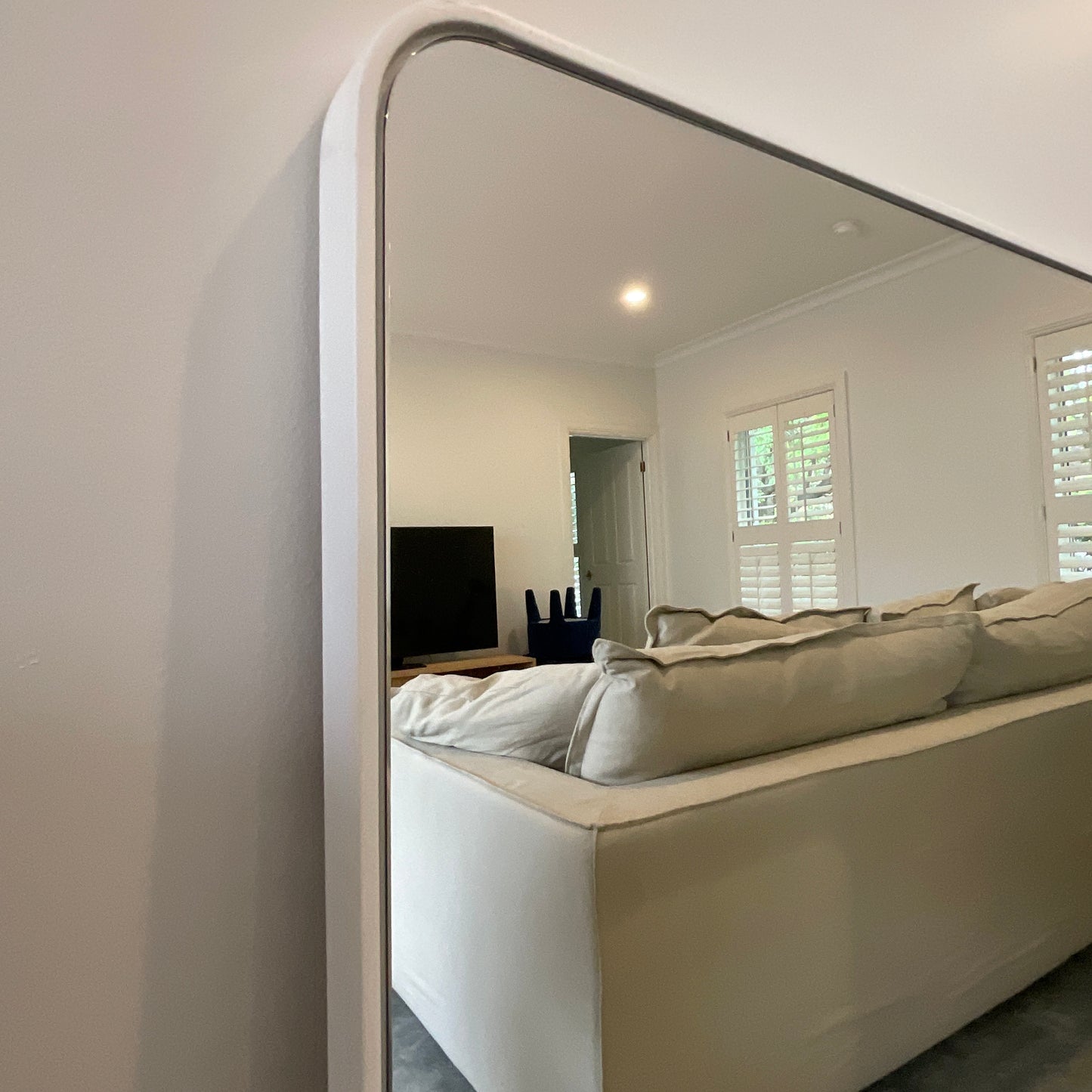 Part of the Flynn range, this wooden mirror features a soft painted matte finish and is available in a range of colours. This mirror is fitted with D-rings for direct hanging. Under no circumstances should cord or wire be tied between the D-rings. We advise contacting a professional picture hanger to install your mirror with the correct fixtures for your specific wall type.