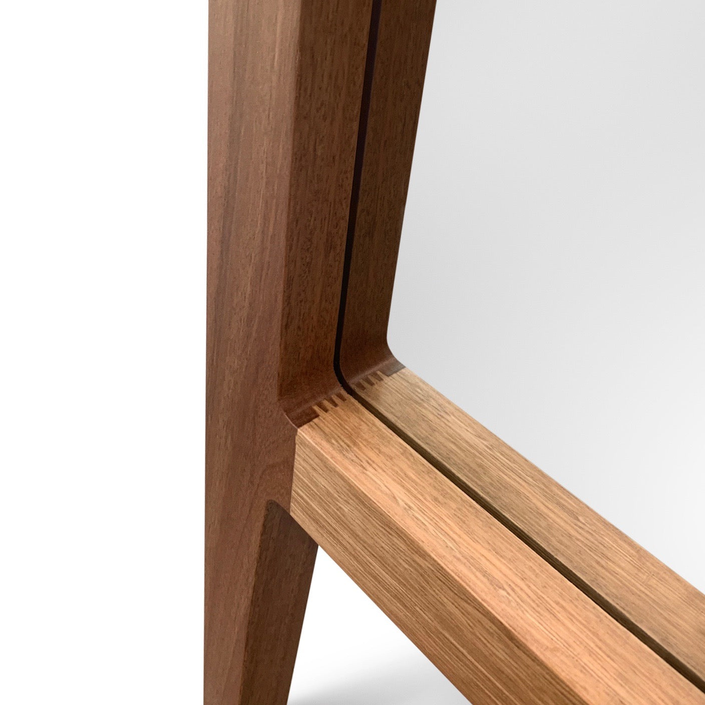 The Folk floor standing mirror has solid timber frame with finger joints and clear mirror. Made from Spotted Gum.