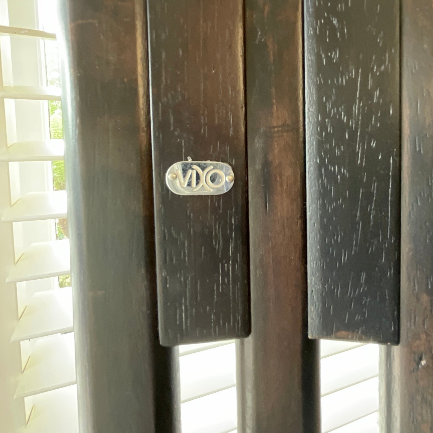 This cleverly crafted room divider is made from hardwood with a dark stain.