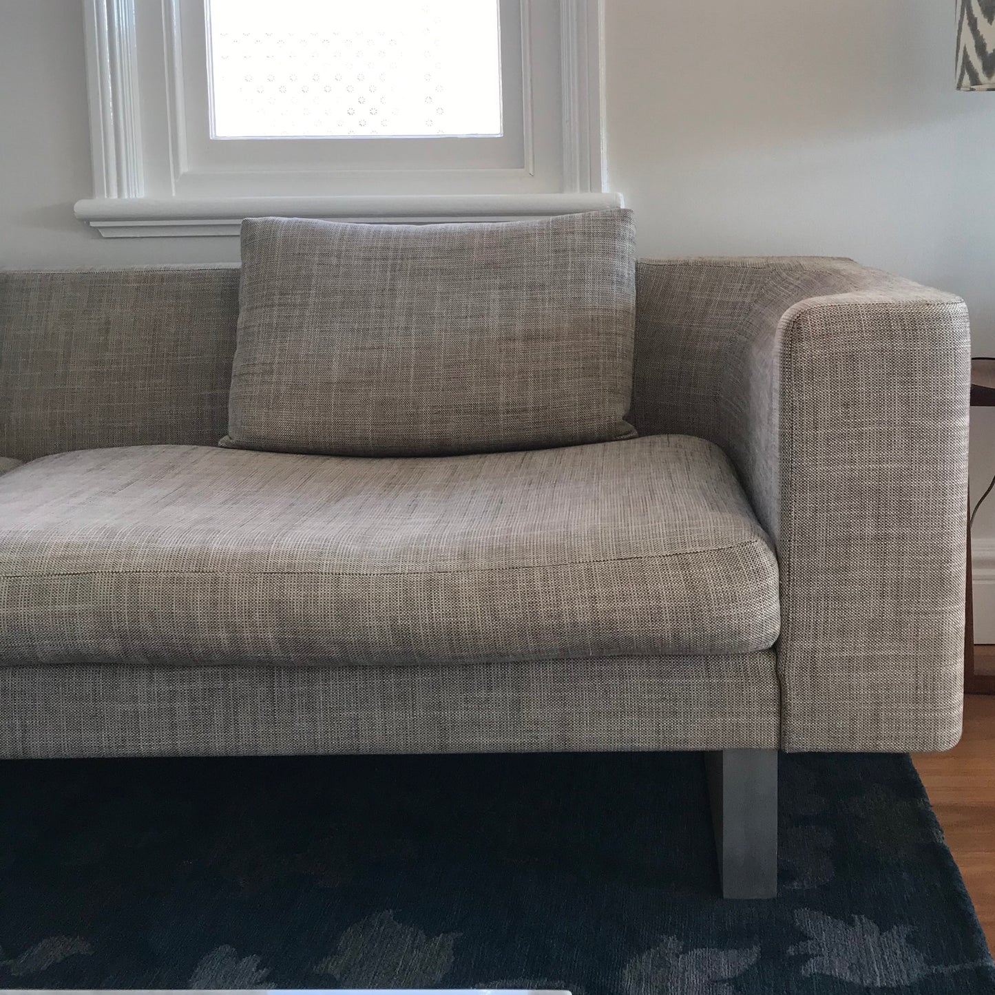 The 801 Sofa series is a deep seat with a moulded foam back. It combines modern clean lines on the exterior with an organic form on the inside. The legs come as cast aluminium. The sofa we have on offer is upholstered in
