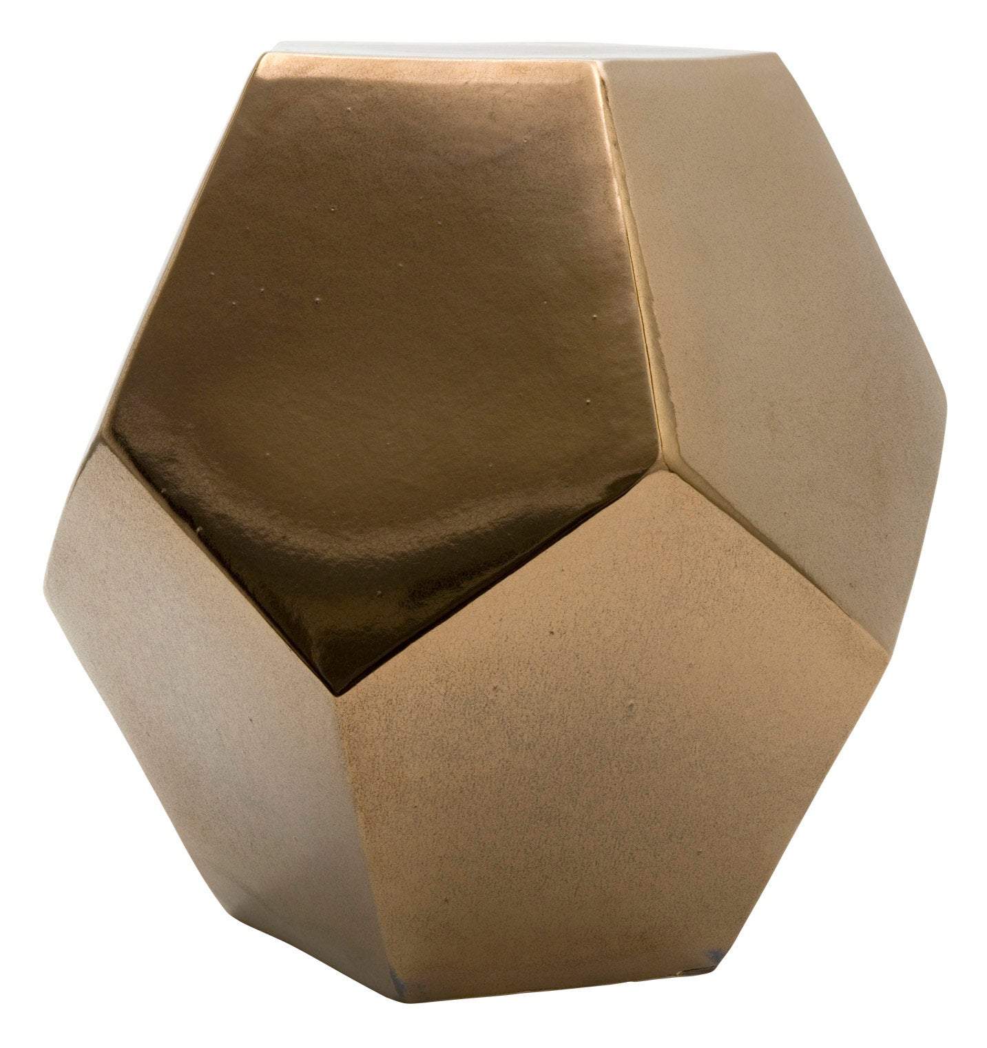 Geometrically speaking, our Geo Gold Stool is a dodecahedron. That's a complex description for our simple ceramic stool - never mind that it is finished with a beautiful crackled gold glaze. Ever flexible, Geo can be used indoors or out, as a stool or side table.