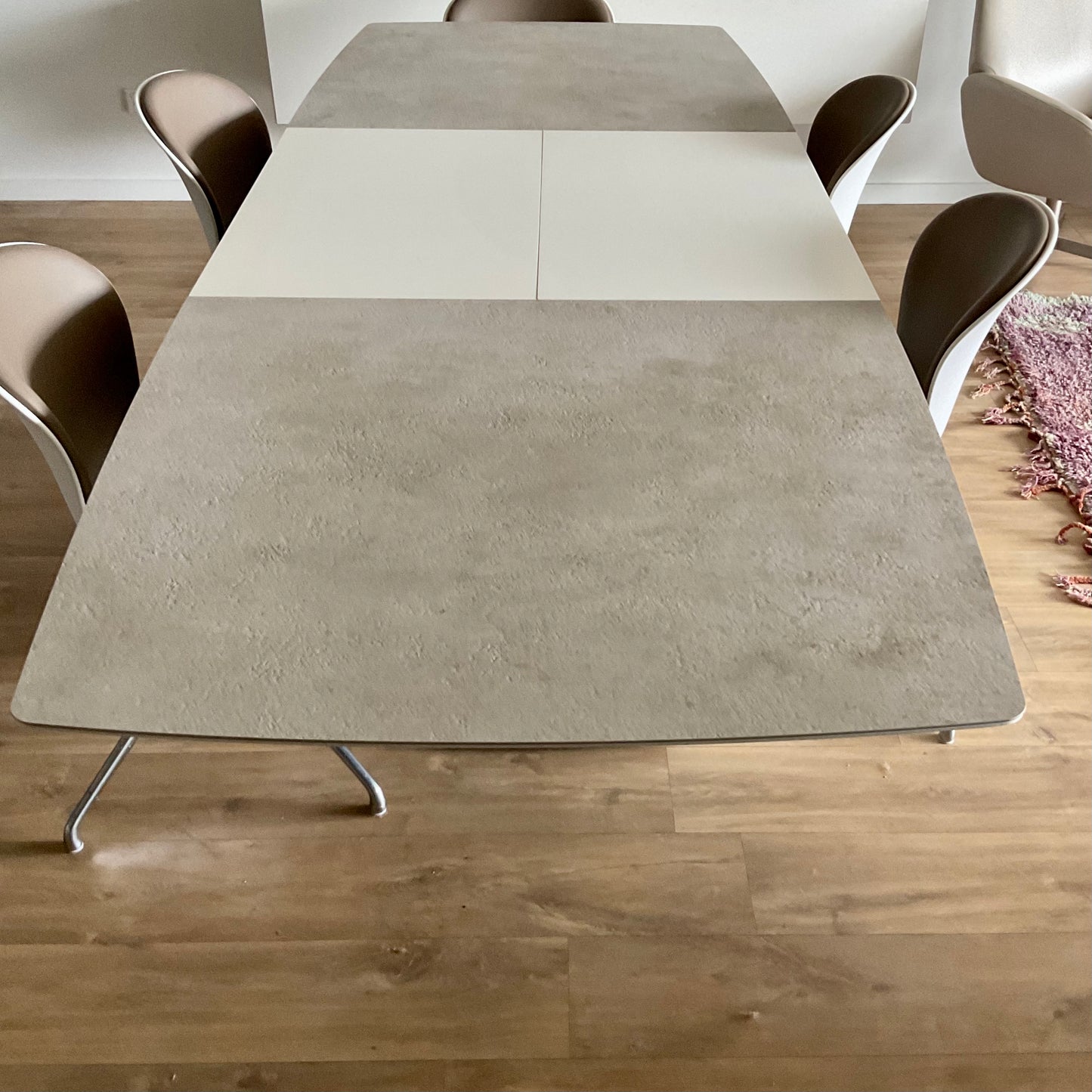 “The longevity of a dining table means it must be able to work across changing themes. Staple hues like black, grey, brown and white will always be on-trend. They will also work as dependable backdrops to whatever trend colour you happen to love this season.” Morten Georgsen designs modern furniture with multiple functions. He has a talent for mixing materials and colours to create a dynamic, yet harmonious look. Morten Georgsen's designs reflect his passion for creating amazing functionality without ever compromising on beauty. The table we have on offer has ash ceramic with matt white insert and base of titanium grey burnished steel.
