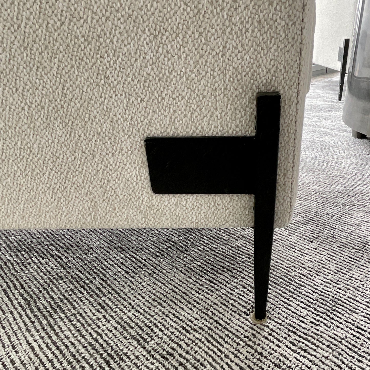 Modern meets classic in the perfect remix represented in this marvelous chair. Its timeless silhouette feels updated and relevant with a suspended frame, metal flange detailing and cast-metal tapered legs all wearing a bold Bronze finish. Its sumptuously comfortable seat is upholstered to perfection in a textured body fabric that feels as delightful as it looks.
