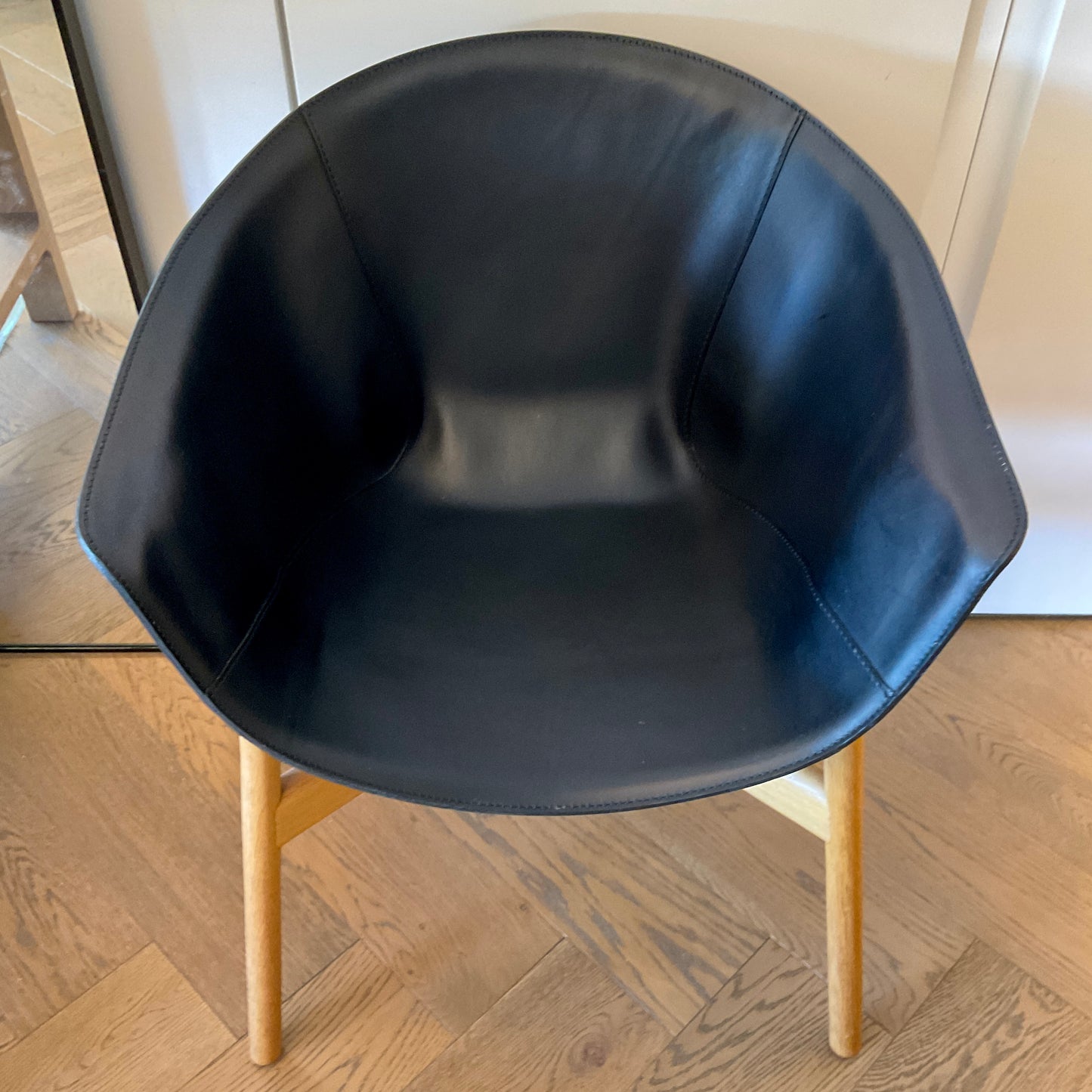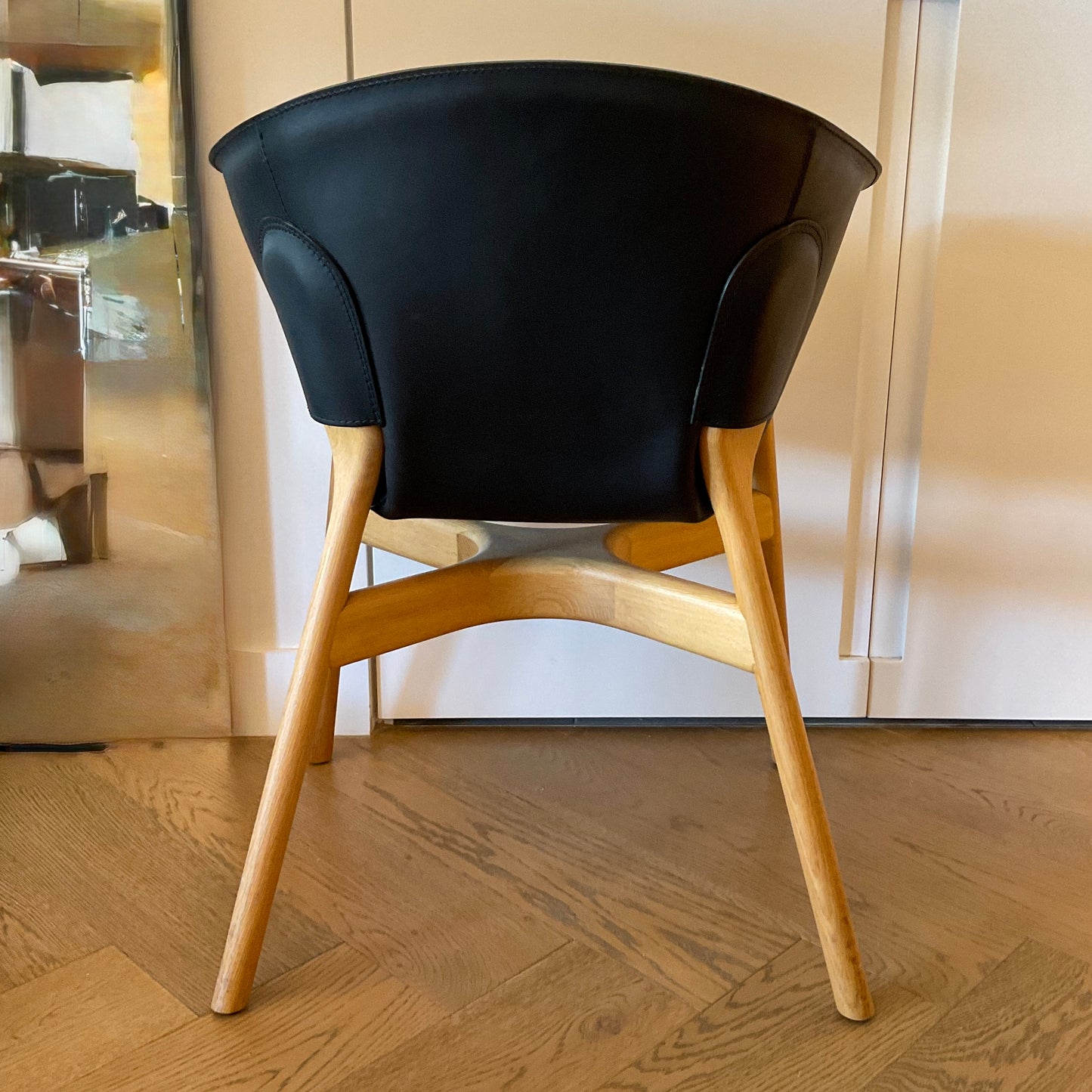 Made from genuine vegetable-tanned Italian leather hand-stitched by an artisan saddle maker, the Pocket Chair by Rudolph Schelling Webermann is a celebration of quality workmanship. The leather shell sits neatly atop solid oak legs, leaving the sitter cleverly and comfortably suspended. Use the Pocket Chair as a feature chair, alone or in groups. And this piece of furniture is intended to look better and better as it ages. A rich, pleasing patina gradually emerges over time, while you sit back and enjoy the process.
