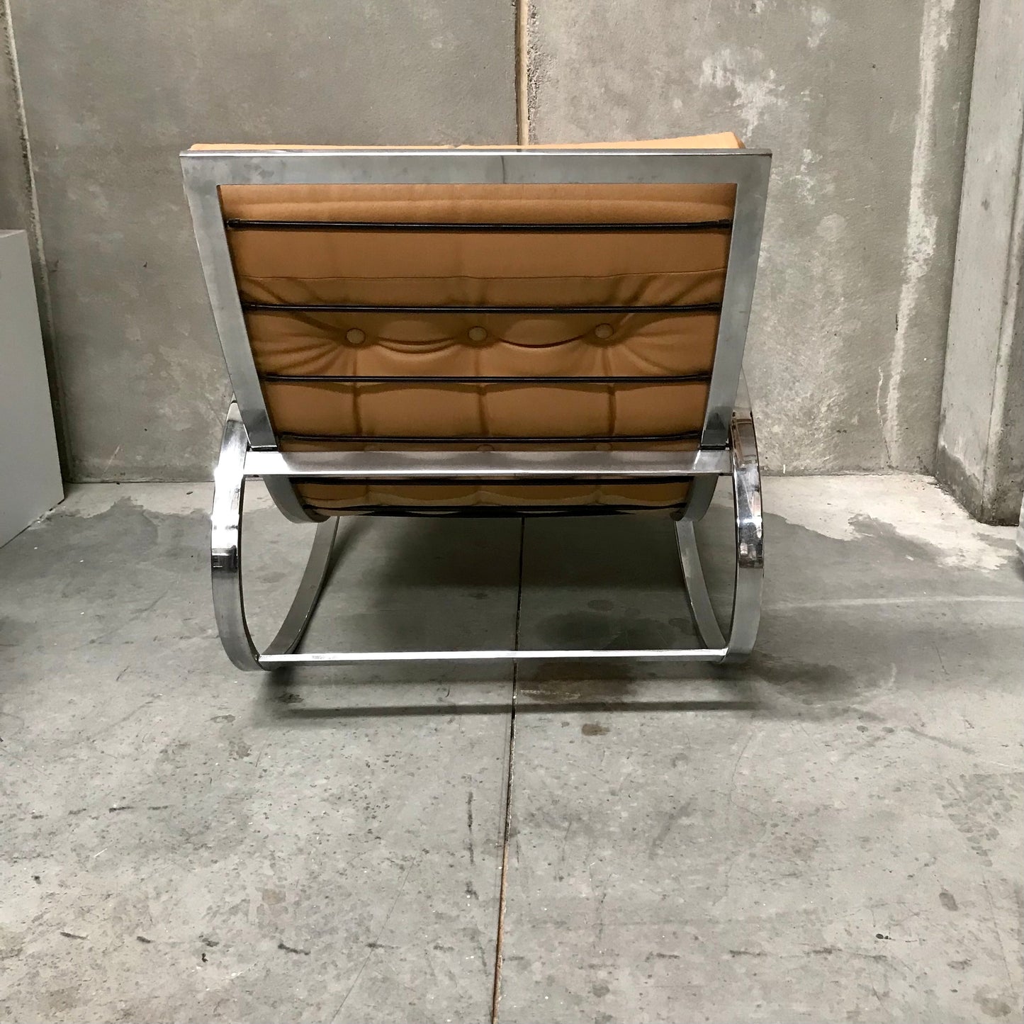 This stylish chrome and vinyl rocker by Renato Zevi for Selig takes some cues from the style of mid-century master Milo Baughman while maintaining it's own unique feel. Substantial chrome construction, plush tufted upholstery, and uncompromising comfort make this an excellent addition to any interior.