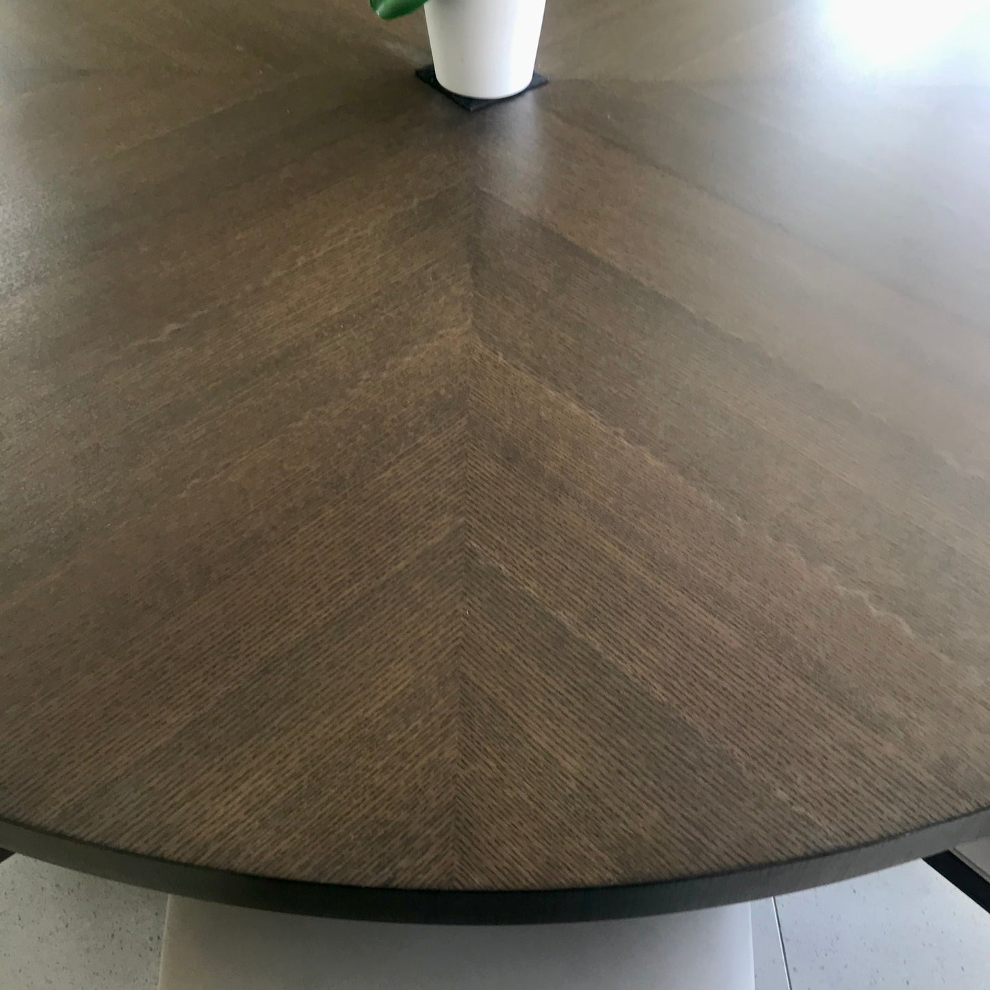 The Xilos table features a wooden base in the form of a cross and is available in both square and round top versions. The table we have on offer is round in smoked oak.