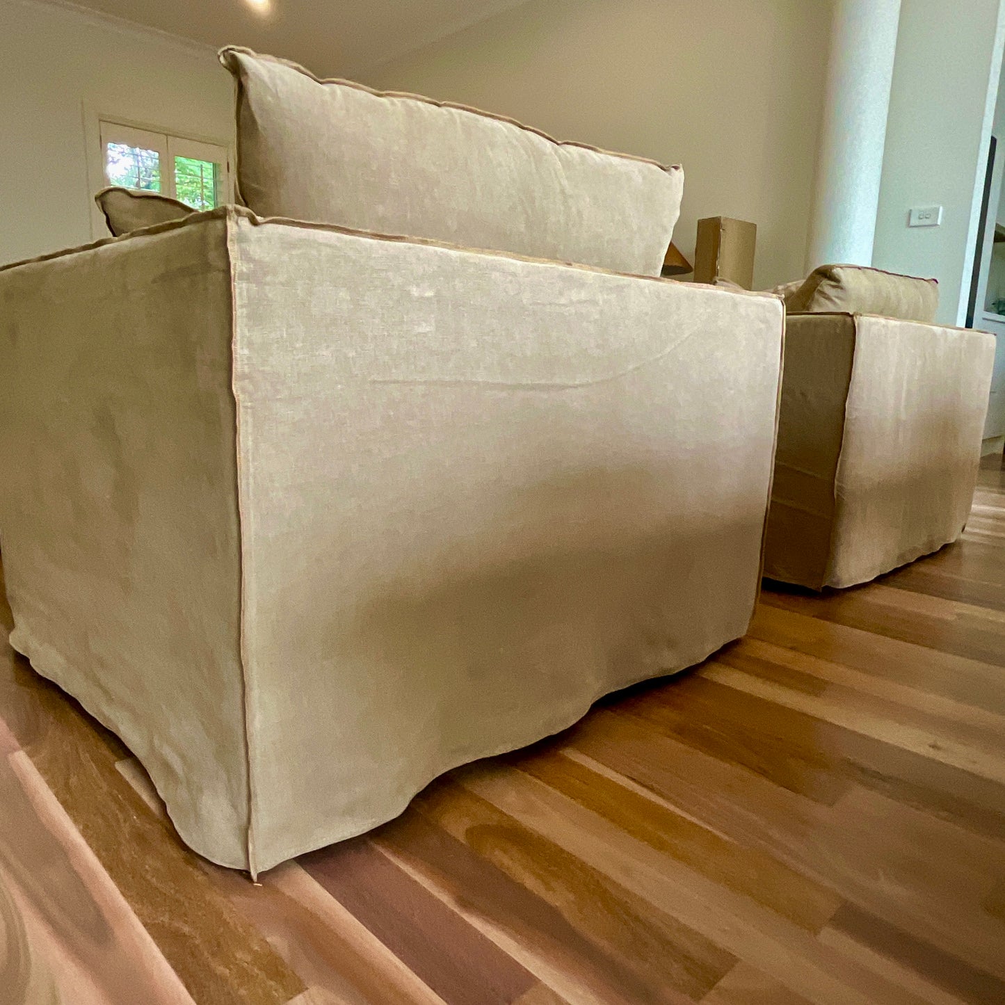 Classic design with superior comfort, the Barni Loveseat features a finely proportioned frame, while feather filled loose cushions and a deep profile provide relaxed, expansive comfort. The chair we have on offer is in chocolate linen.
