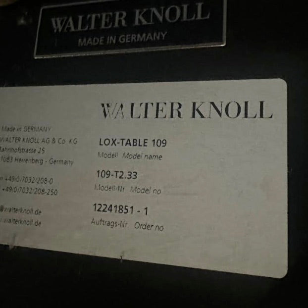 Equally suited to dining room, office or restaurant: here you can take a seat without any chance of hitting the edges. The medium height can be comfortably pushed up to a sofa so you can work in a relaxed atmosphere or enjoy a small snack. The footplate elegantly mirrors the form of the tabletop. The table we have on offer has a black glass top.