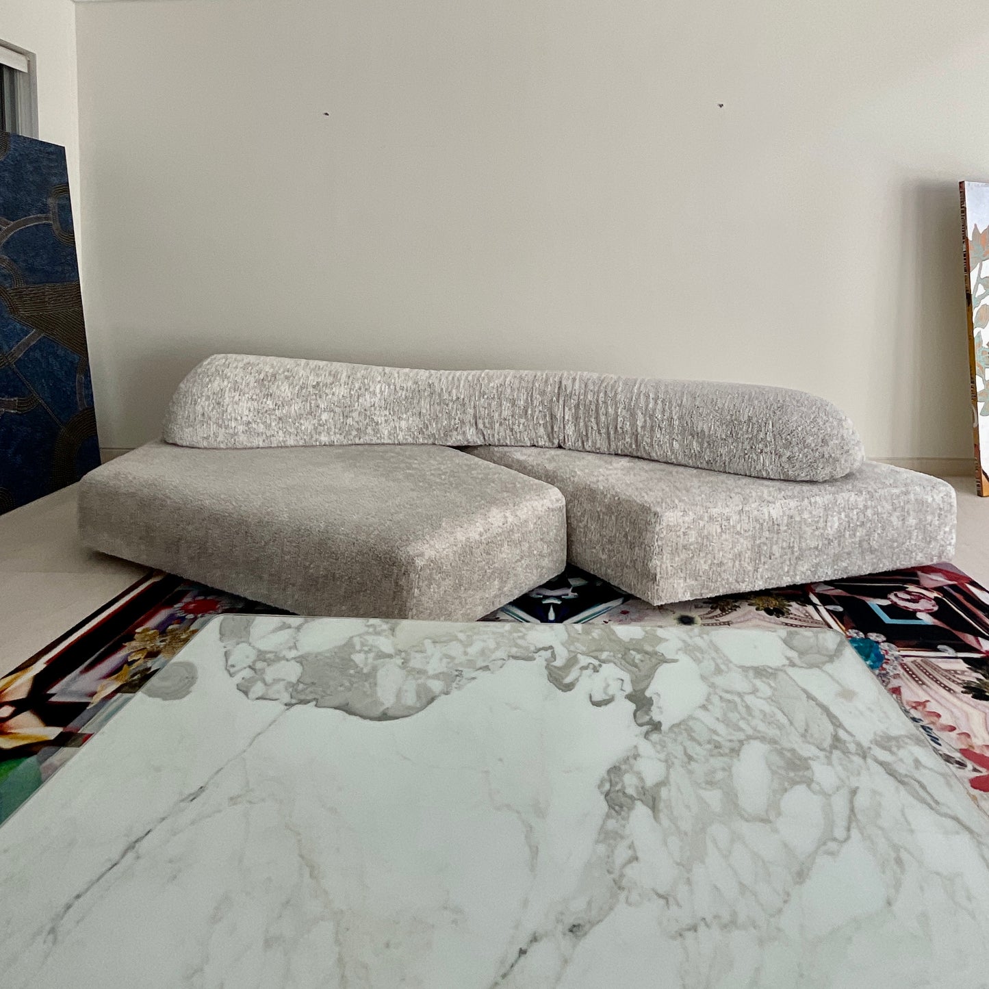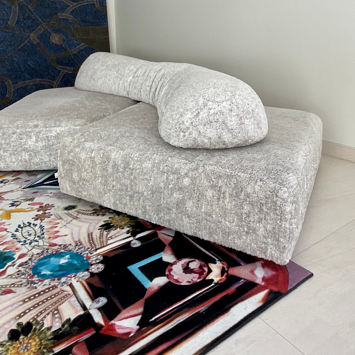 Like a soft sculpture that can be mixed and matched, On the Rocks by Francesco Binfaré is both flexible and incredibly comfortable and has no visible frame. A design that includes four seating elements in different shapes and two backrests, the elements are separated from the base to allow freedom with arrangement and personal expression. Pieces can be arranged in various configurations: either combined in one composition or free standing to shift the interior perspective: its holistic ‘domestic landscape’ encouraging true engagement within a space. A highlight of the collection is embedded in the sofa’s innovative, soft form that supports absolute relaxation.