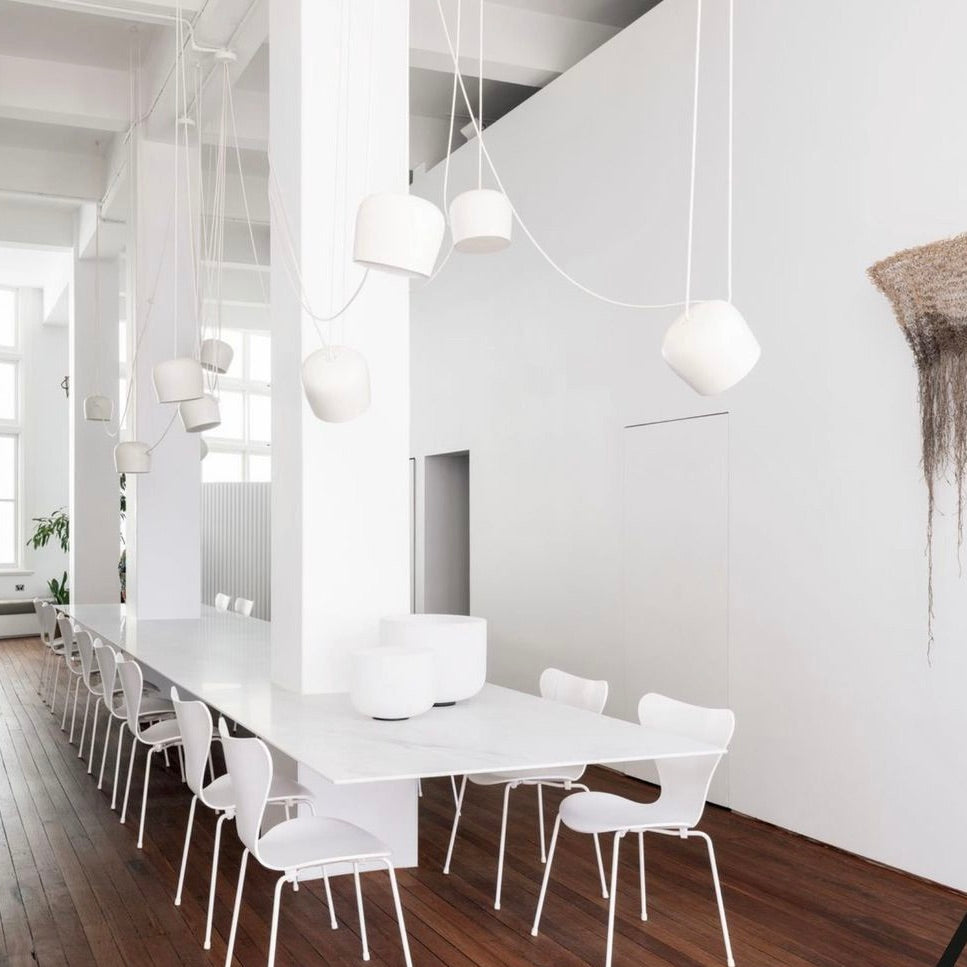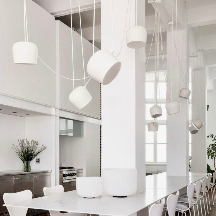 Whether you're seeking an iconic pendant light to define your dining room, a sculptural floor lamp as a statement piece, elegant table lamps for ambient warmth, or discreet task lighting for your workspace, our lighting collection delivers both form and function. From Achille Castiglioni's playful Arco floor lamp to Arne Jacobsen's timeless AJ series, from Poul Henningsen's layered PH pendants to contemporary LED innovations, every piece represents design excellence that transforms atmosphere.