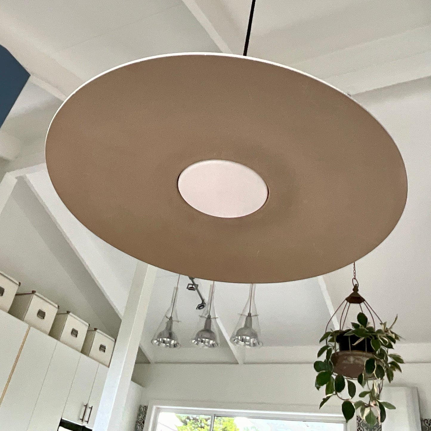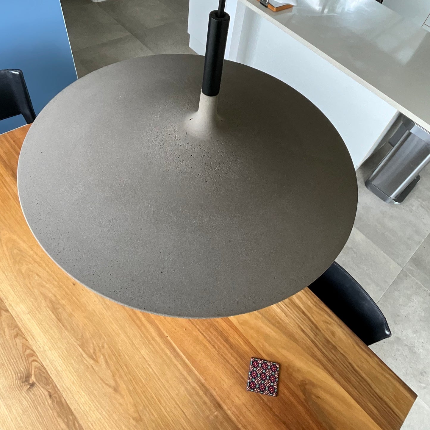 A special, exclusively formulated concrete plays the starring role in the Aplomb lamps. The especially large and slimline design of the Aplomb Large suspension lamp diffuses broad beam of light.