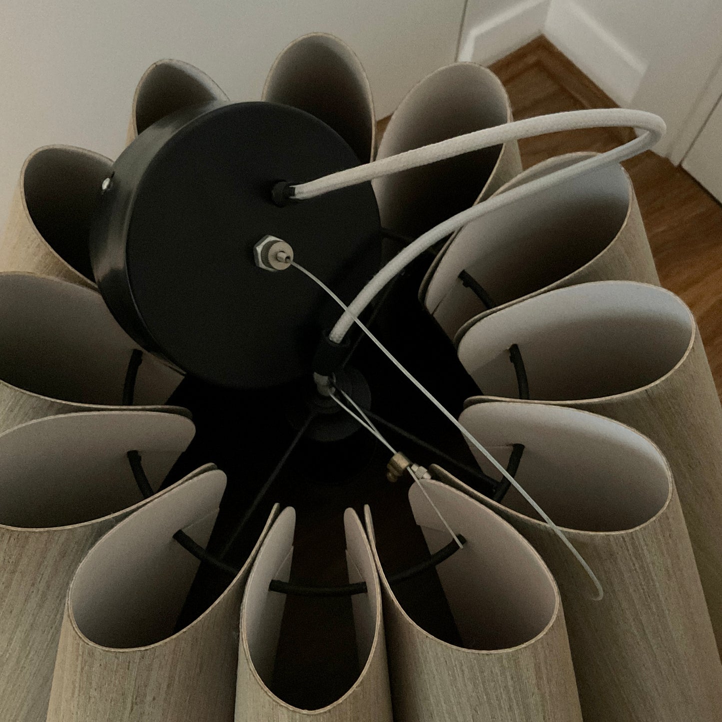 The Lora 80 Pendant Light by WEPlight is a beautiful, high-quality indoor light that seamlessly combines artistry and functionality. Made with a two-sided wood veneer section fused with a malleable center panel, this exquisite fixture offers enhanced strength and flexibility. It is available in various styles and sizes and features a wide range of finishes for both the interior and exterior of the shade. From modern to traditional, the Lora 80 Pendant Light is a versatile and elegant addition to any interior decor. The light we have on offer is in beech with a white interior. The light has a white cloth cord and black canopy.