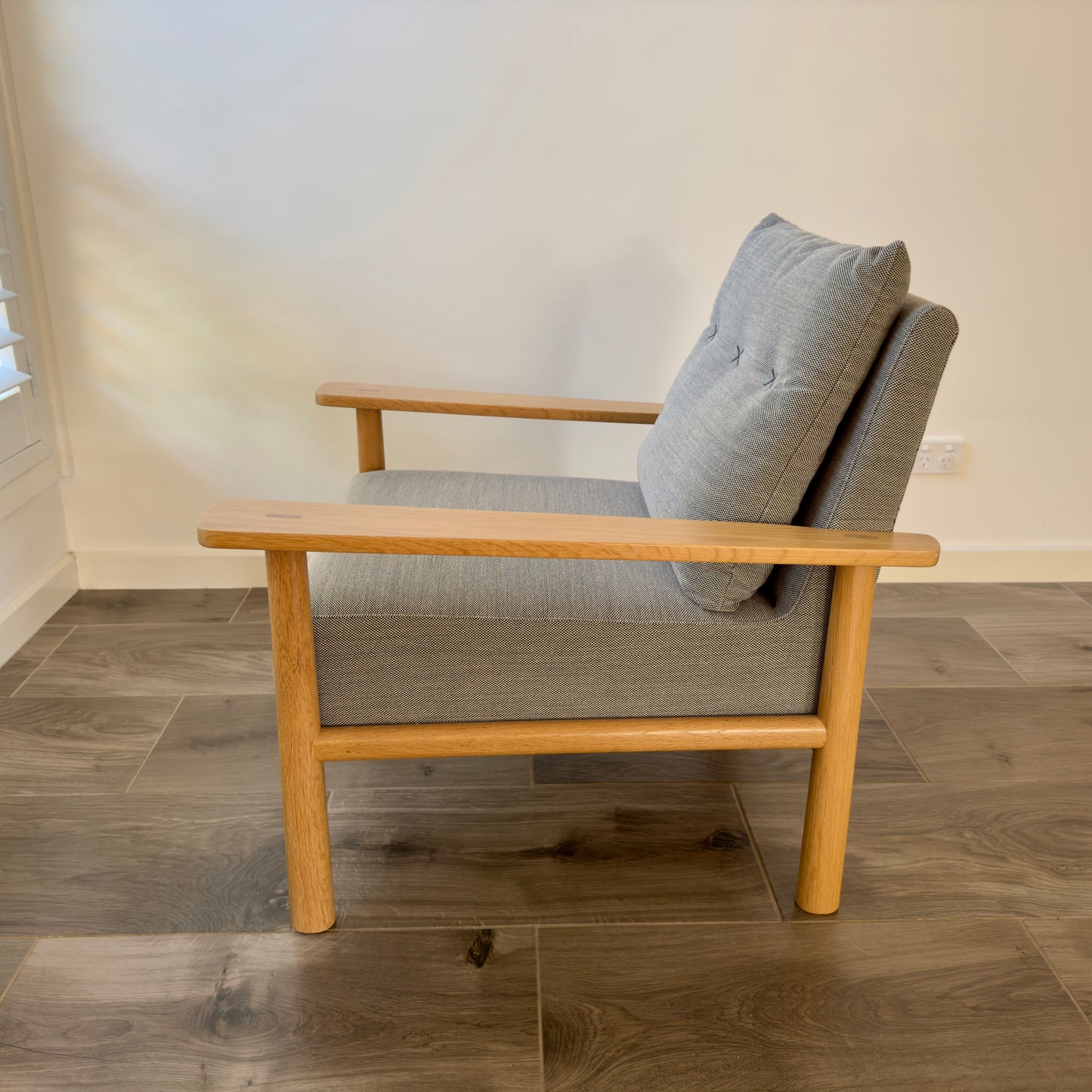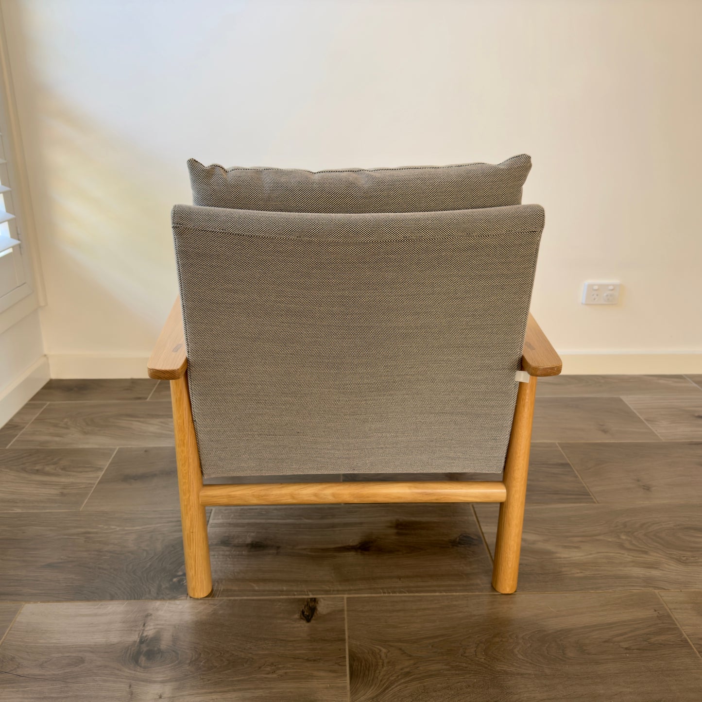 Well-loved within the Jardan family, Archie has a charming character with distinct paddle arms and a playful cross-stich detail. Archie’s high resilience foam seat and feather down blend back cushion provides a structured sit. Set within an exposed American Oak frame, Archie’s light footprint makes it a great piece for smaller spaces. Solid American Oak frame, high resilience foam seat with feather and down wrap and back cushion. Our foams are all GECA certified and timber is sourced from sustainably managed forests. Fabric: Jardan Stria Humbug (primary) and Charcoal (embroidered cross stitch)