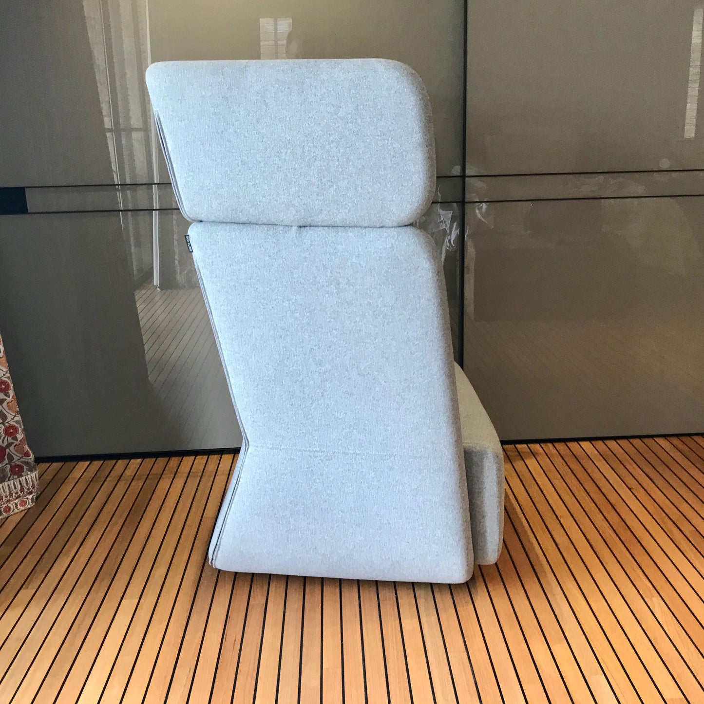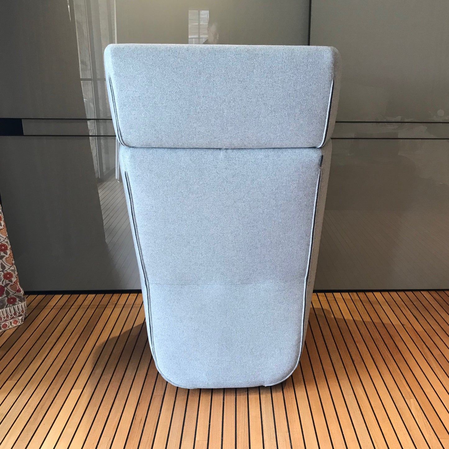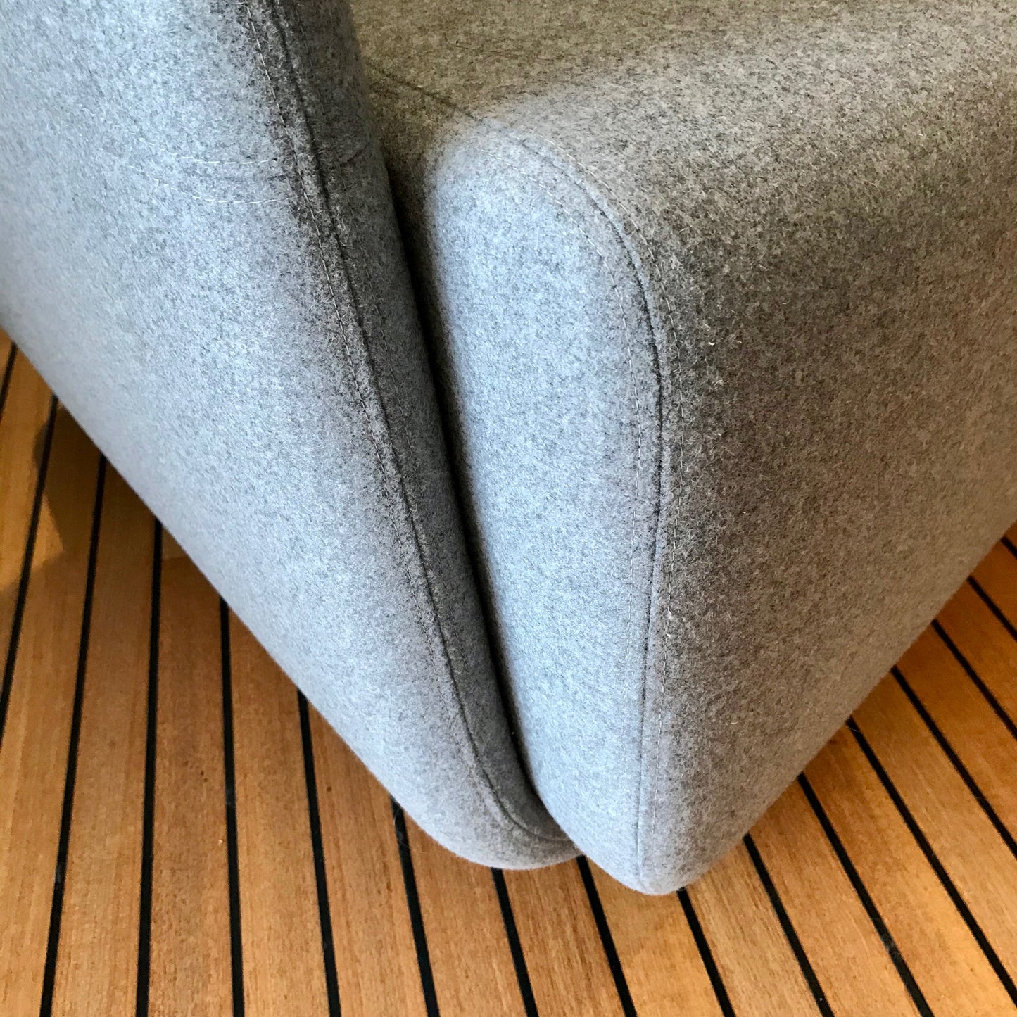 Colourful beach baskets. Inspired by the functional beach baskets, Basket is designed as an integrated modular system with two different back heights, which allows you to co-create and design your seating just as you like it. The intelligent sofa is a great setting for an intimate and cosy time alone or with friends, family or colleagues. The Basket armchair comes with a swivel or fixed base. The chair we have on offer has a fixed base and is upholstered in a grey coloured wool felt fabric.