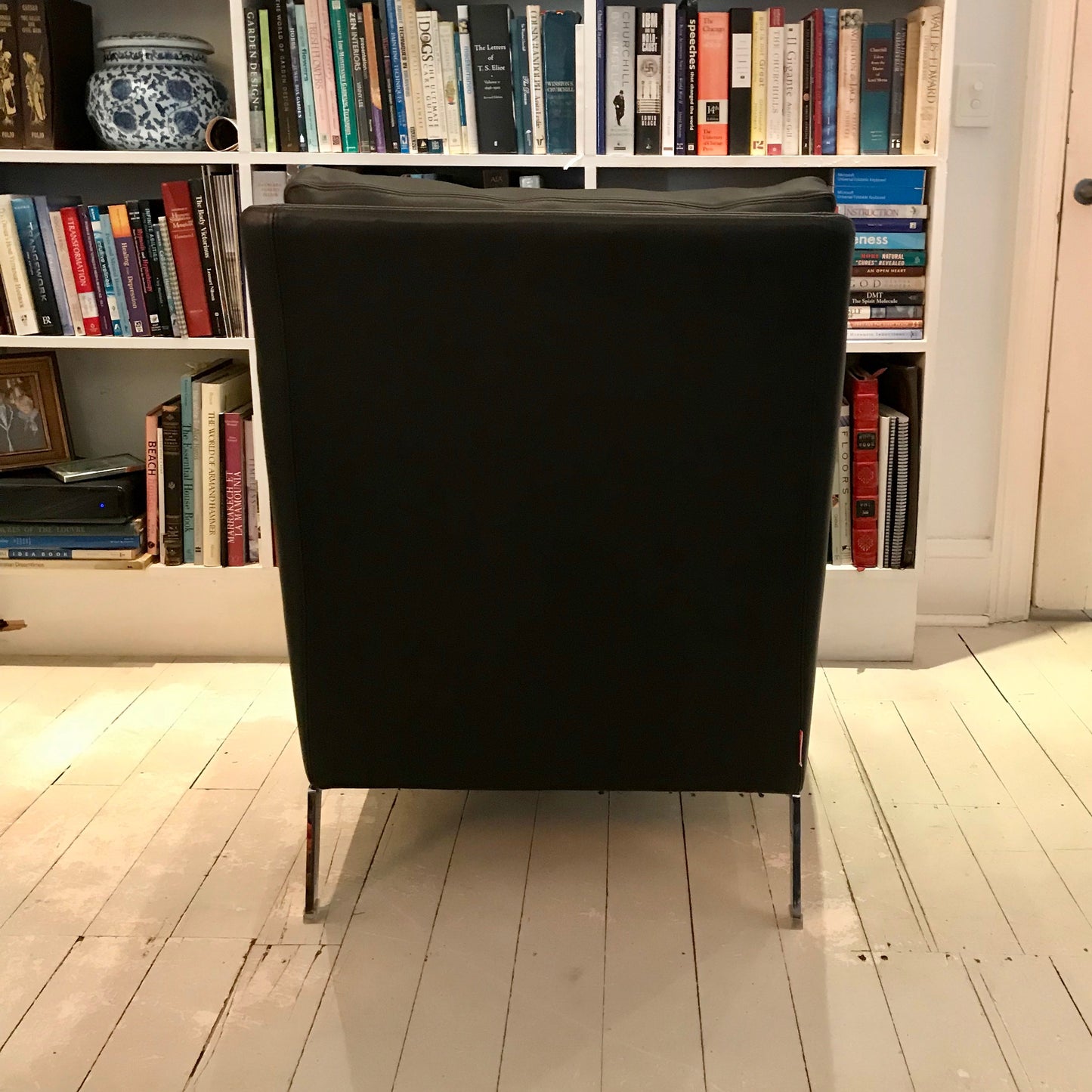 The Boss embodies the spirit of true craftsmanship and quality. It is not only elegant, it is incredibly comfortable. The chair is crafted using the highest quality fabrics and finished with hand-tailored fully removable covers. Perfect for any space in your home. Manufactured by Flexform. The chair we have on offer is upholstered in black leather