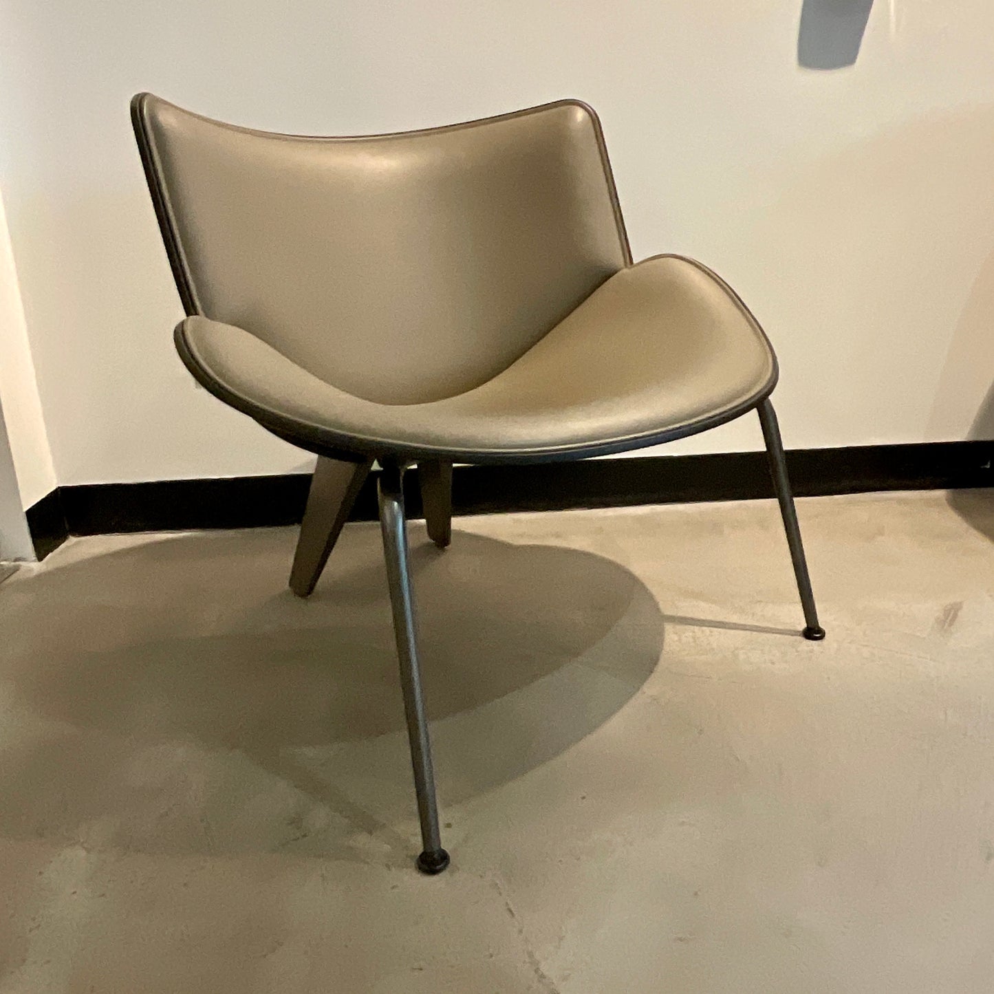 The small armchair Do-Maru is named after the ancient armour worn by samurai warriors, made up of painted and decorated thick leather plates that covered and protected the hero's body. Like the swivel armchair Almora, designed by Doshi-Levien in 2014, once again the shell of the seat is made up of a couple of superimposed bodies, softened by paddings that can be upholstered with either fabric or leather. The cast aluminium back support boldly underlines the conical profile of the small armchair, while the anterior support is in tubular metal with black chromed. The chair we have on offer is upholstered in taupe leather.