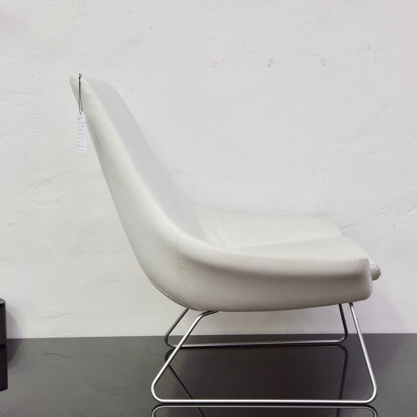 The Flow Chair by Tom Lloyd and Luke Pearson designed 2002, manufactured by Walter Knoll, The chair we have on offer is in white leather on a tubular brushed steel sled base. Bearing 'Walter Knoll Made in Australia' label to underside of base.