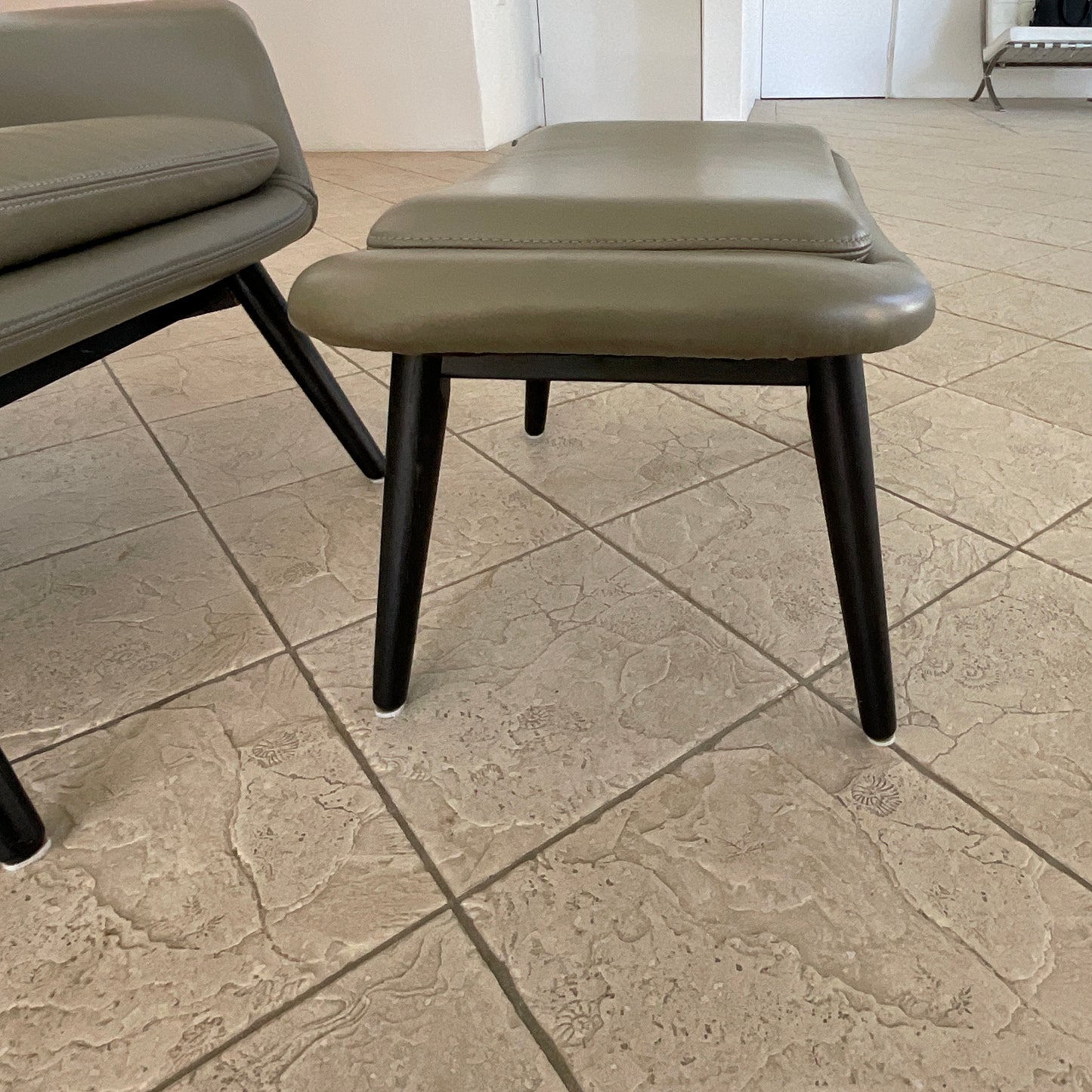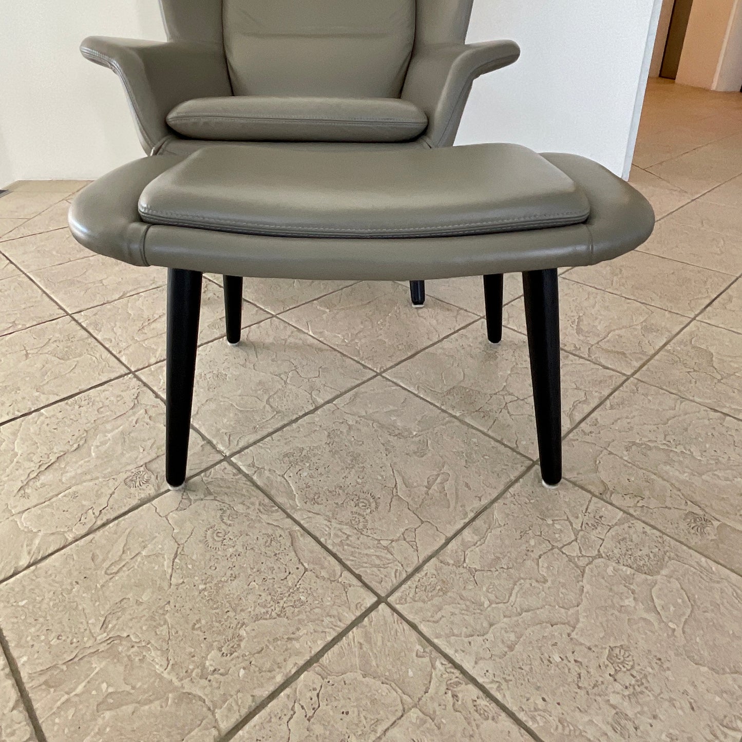 Often referred to as accent chairs, occasional chairs, and recliner chairs, modern armchairs bring a touch of elegance to any room. Whether you're choosing an armchair for your living room, dining room, home office, bedroom or beyond, consider what you need it to do, where you want it to be and how you want it to look. The Hamilton Chair + Footstool will fit the bill. The chair + Fottstool we have on offer has a black stained timber frame. The upholstery is in light grey Andorra leather.