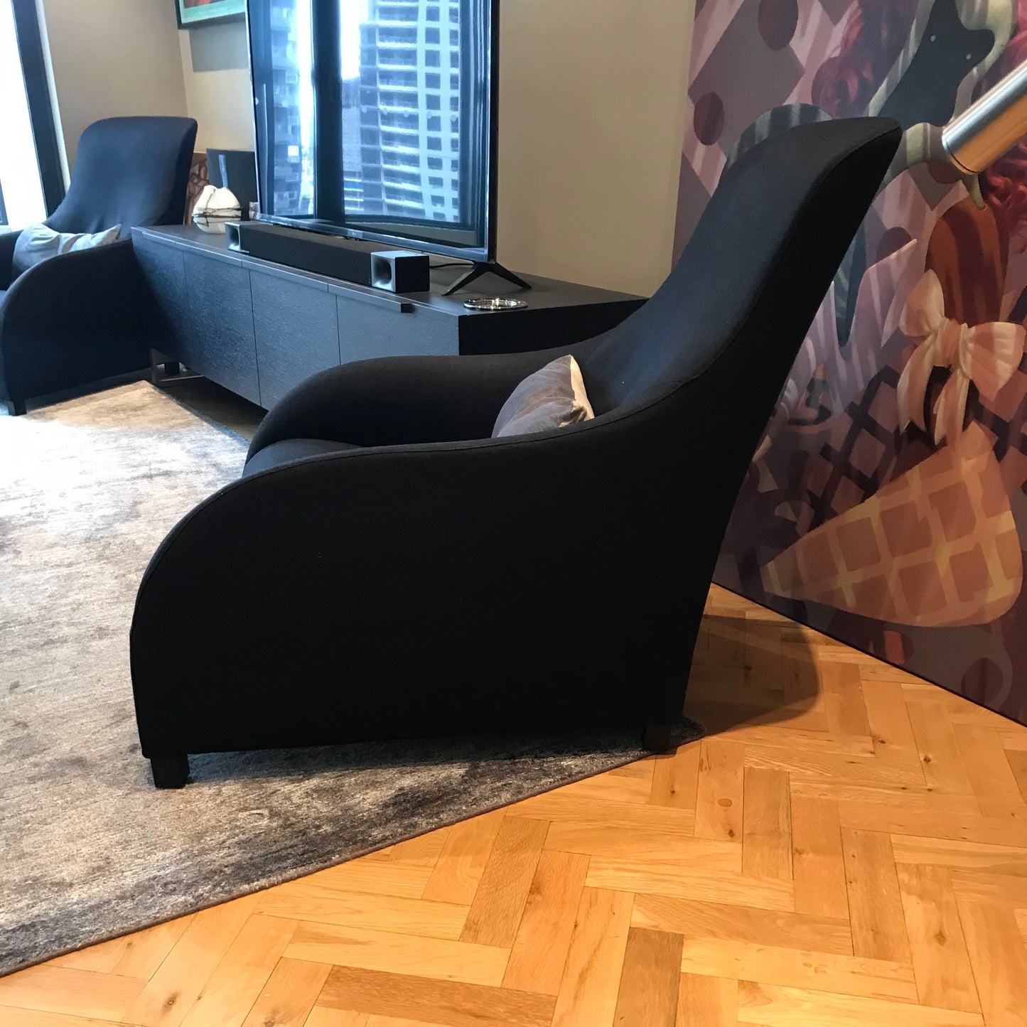 The Kalos Armchair is part of the Apta Collection by Antonio Citterio for Maxalto. The chair is a modern interpretation of the more classic easy chair, Kalos comes both in leather and fabric upholstery. The chair we have on offer is in black fabric.