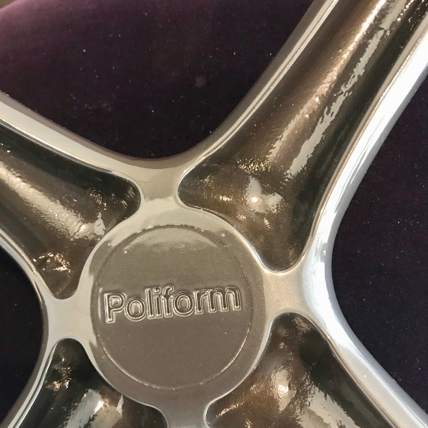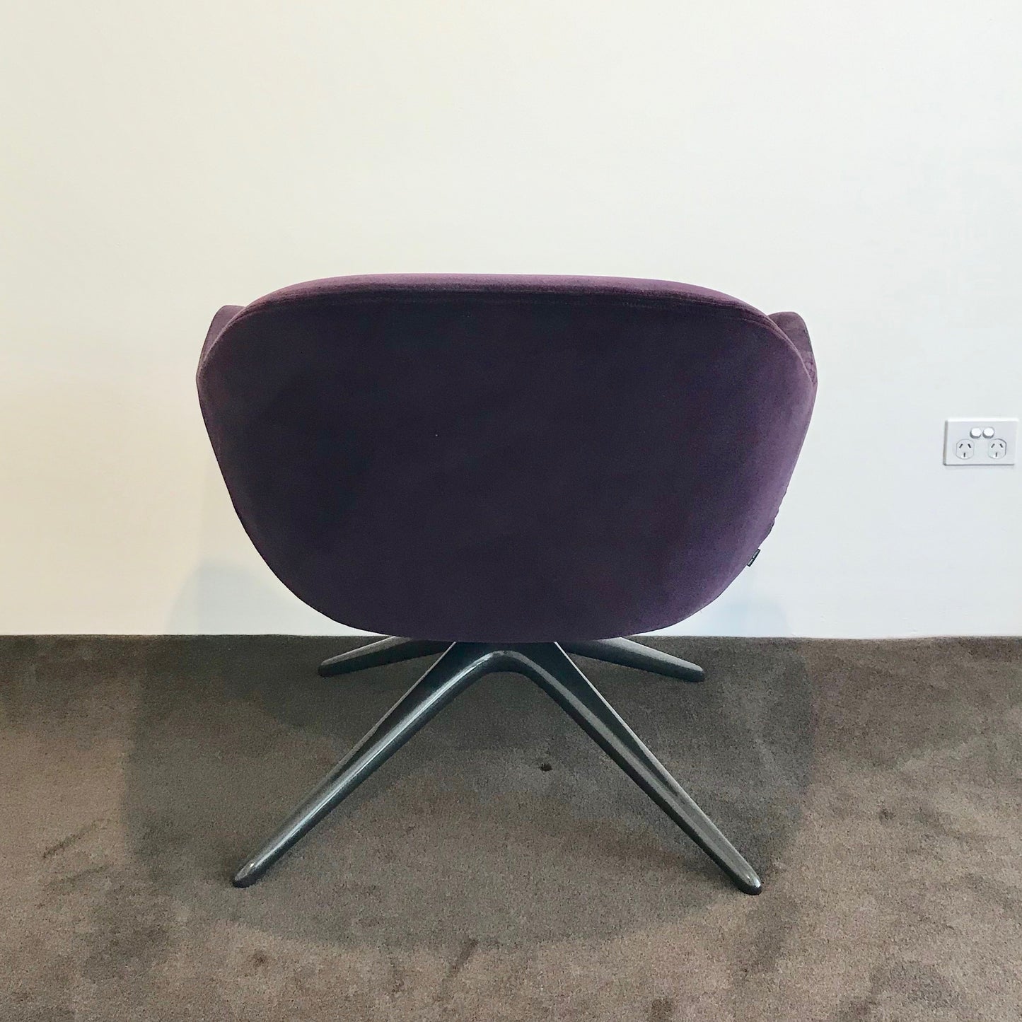 Designed by Marcel Wanders for Poliform, the Mad Chair has a harmonious structure and soft shell seat. A nod to the 50s style found in the TV series Mad Men, the form strongly suggests an ideal design free from any material boundaries. The chair we have on offer has a metal 4 leg base with a rich purple velvet upholstery.