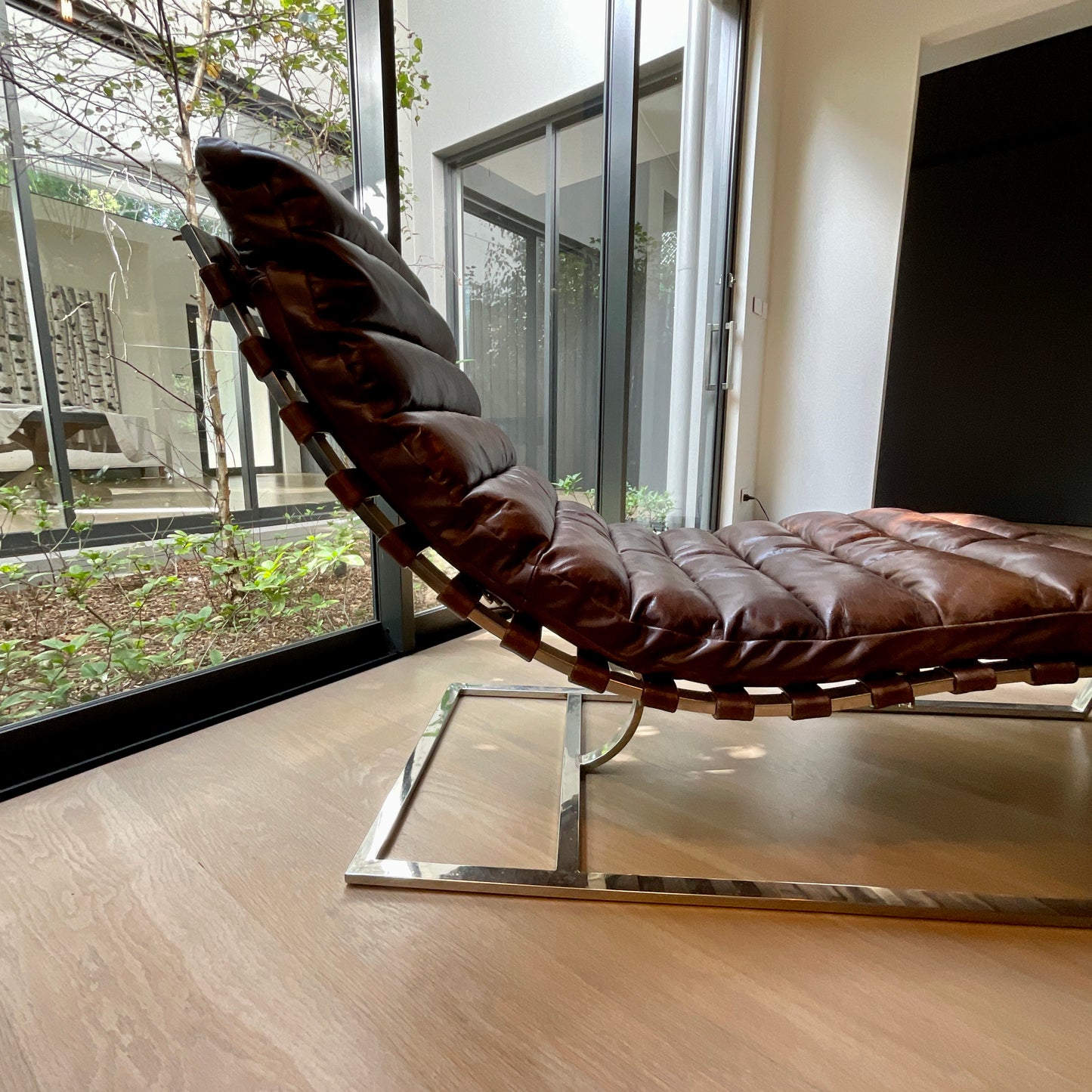 Inspired by a classic 1960s mid century silhouette, the Oviedo chaise's graceful contours hug the body for maximum comfort.