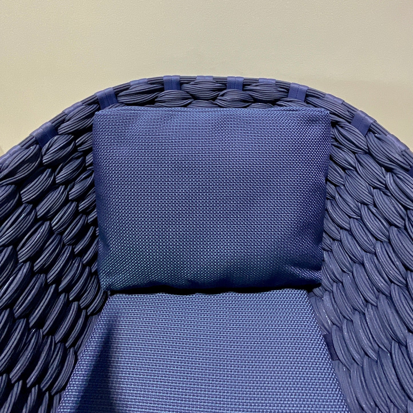 Compact armchair seat cushion upholstery: fixed and available in the fabrics Aquatech, Luz, Rope T, Brio, Thea or Wara combined with the structural weave.